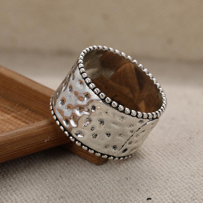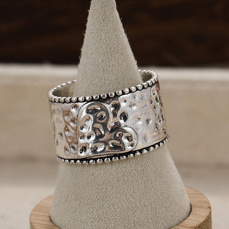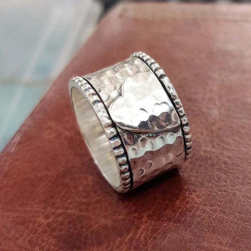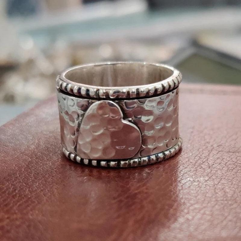 This vintage bohemian-style spinner ring features a heart design with beige and K enamel accents. It's a perfect gift for daily wear or as a Mother's Day gift.