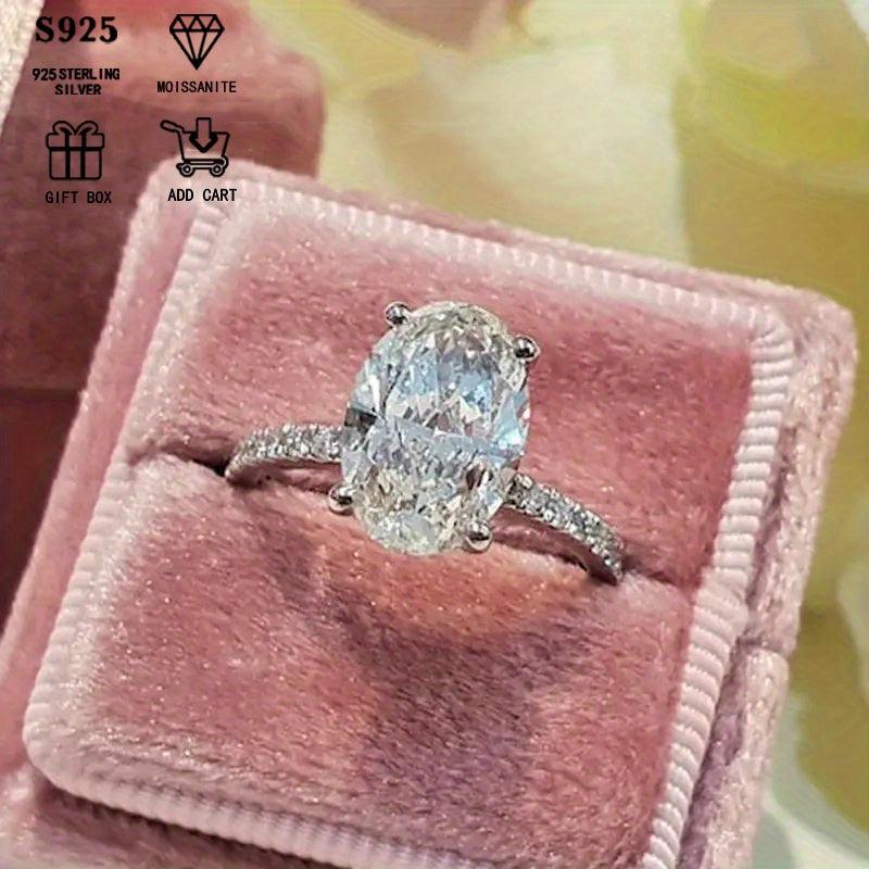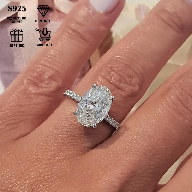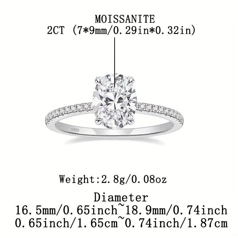 This stunning oval moissanite ring is perfect for weddings or casual attire. Made of hypoallergenic S925 silver, it adds a touch of elegance to any outfit.