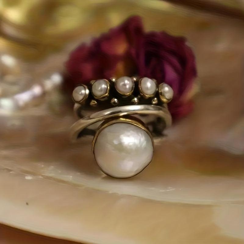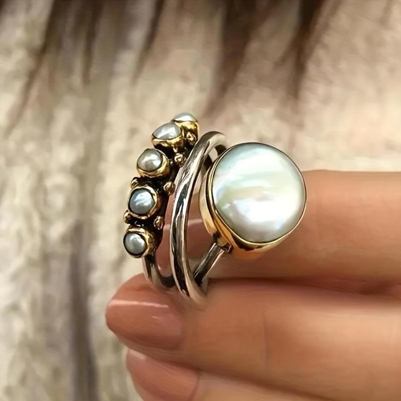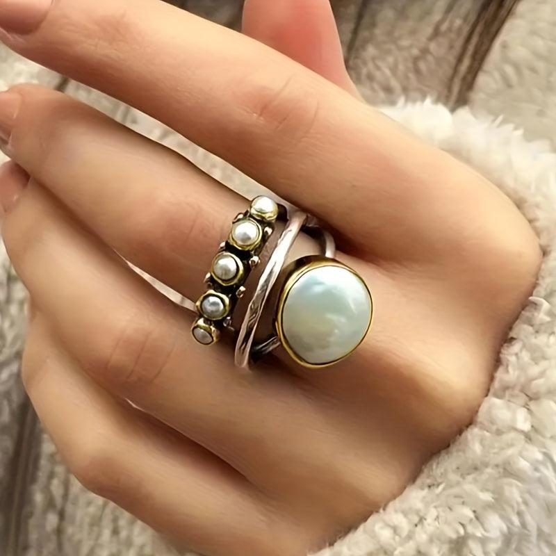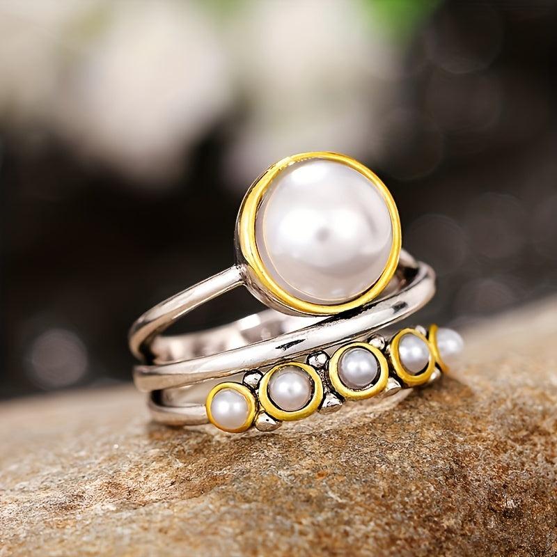 Enhance your outfit with this boho style ring featuring inlaid artificial pearl, symbolizing elegance and beauty. Makes a perfect anniversary or birthday gift for women to match with their daily outfits.