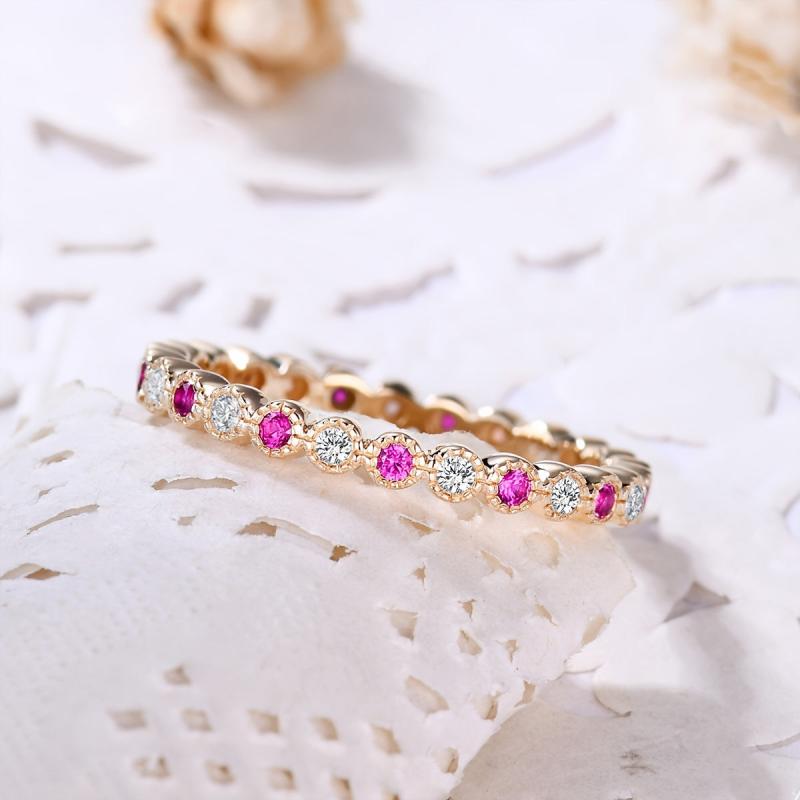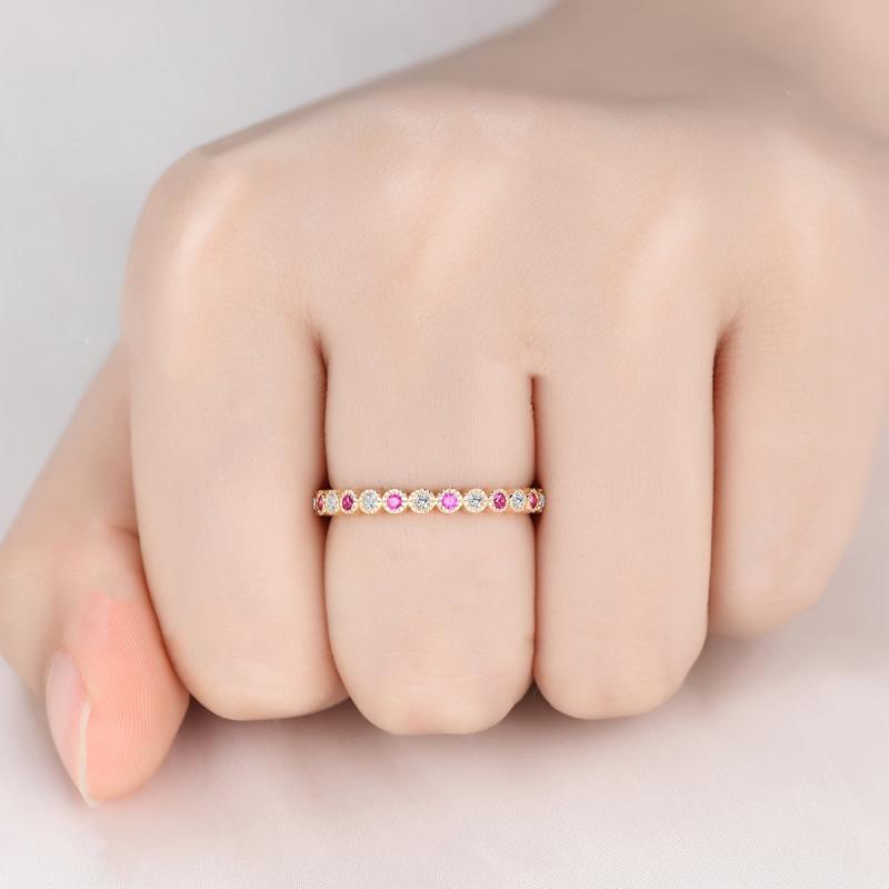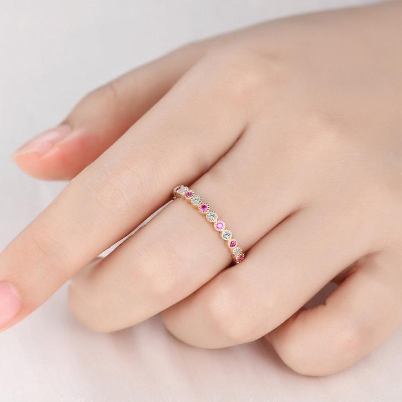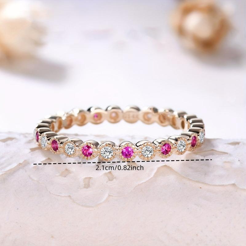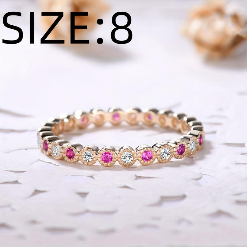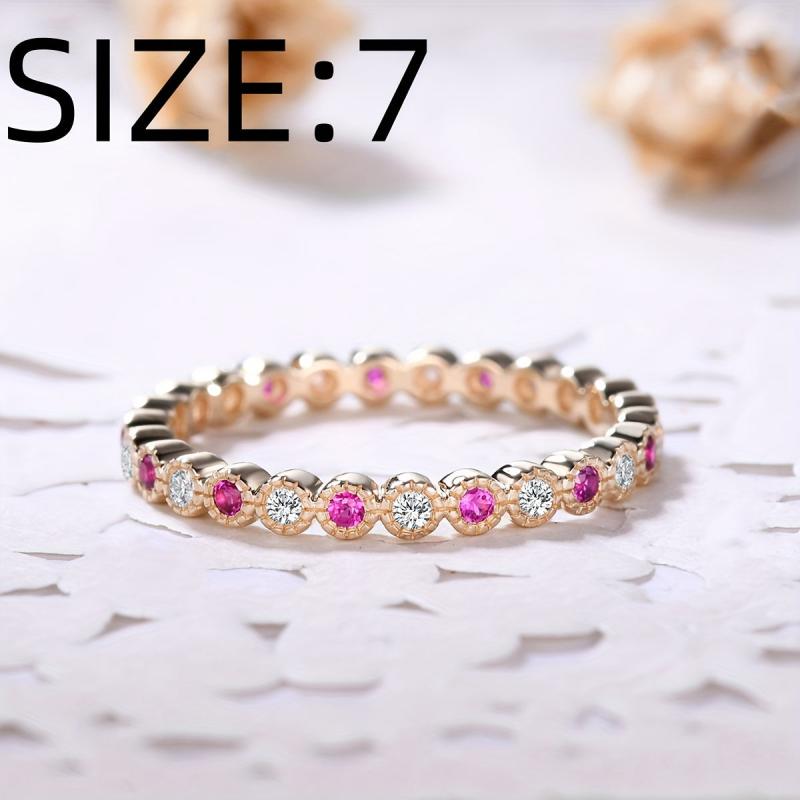 Elevate your boho look with this stunning rose gold plated copper ring featuring pink and clear zirconia stones. Perfect for both men and women.