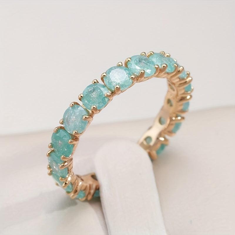 This wedding band features a boho turquoise zirconia circle design in a timeless goldtone finish. It's an ideal gift for all seasons and occasions.
