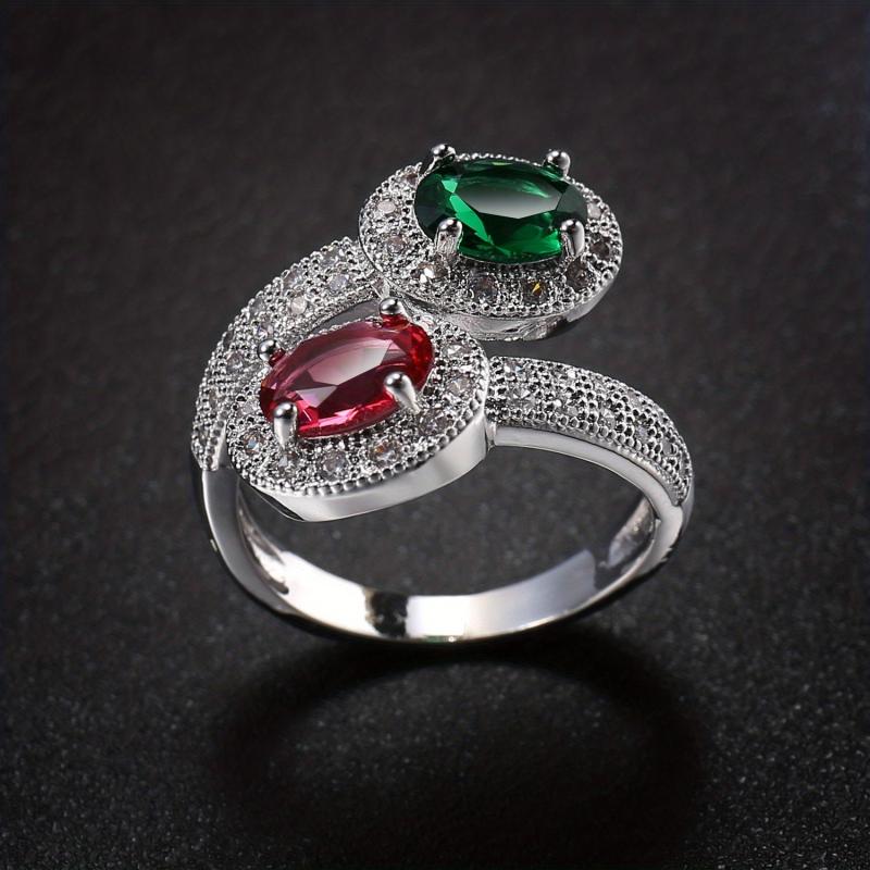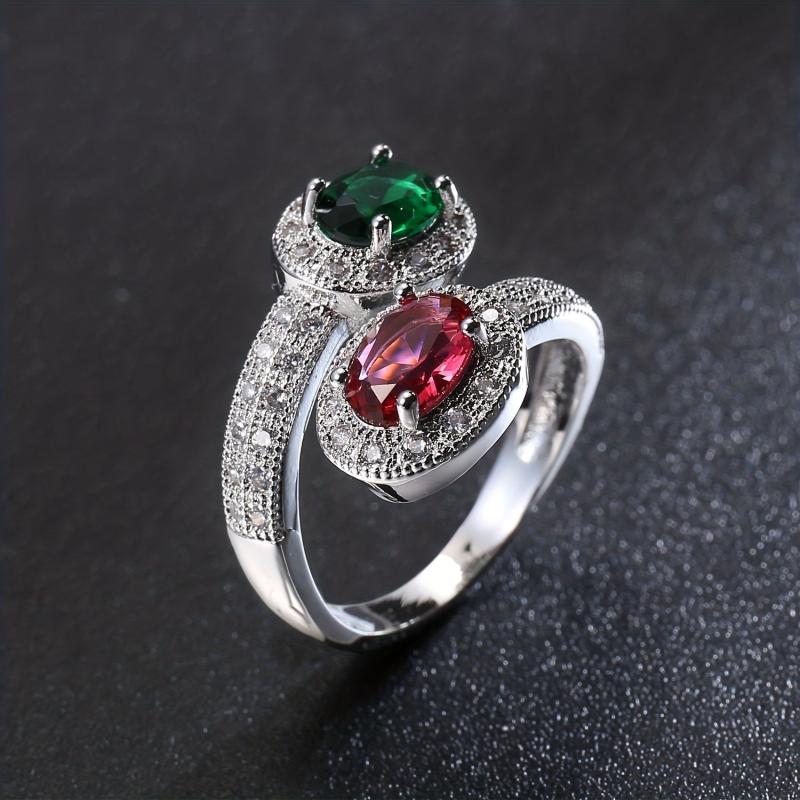 This stunning boho ring features red and green synthetic zircon set on a copper band, making it ideal for daily wear or gifting as everyday jewelry.
