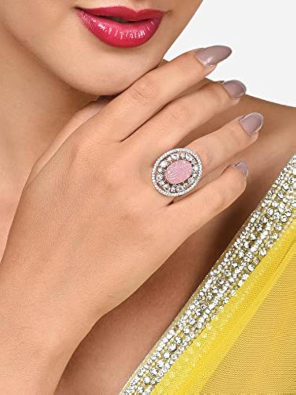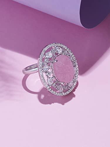 Elegant brass ring with dazzling cubic zirconia embellishments, perfect for women who love contemporary jewelry. Adjustable to fit various finger sizes.