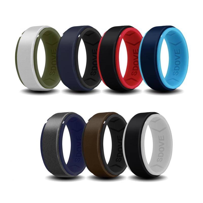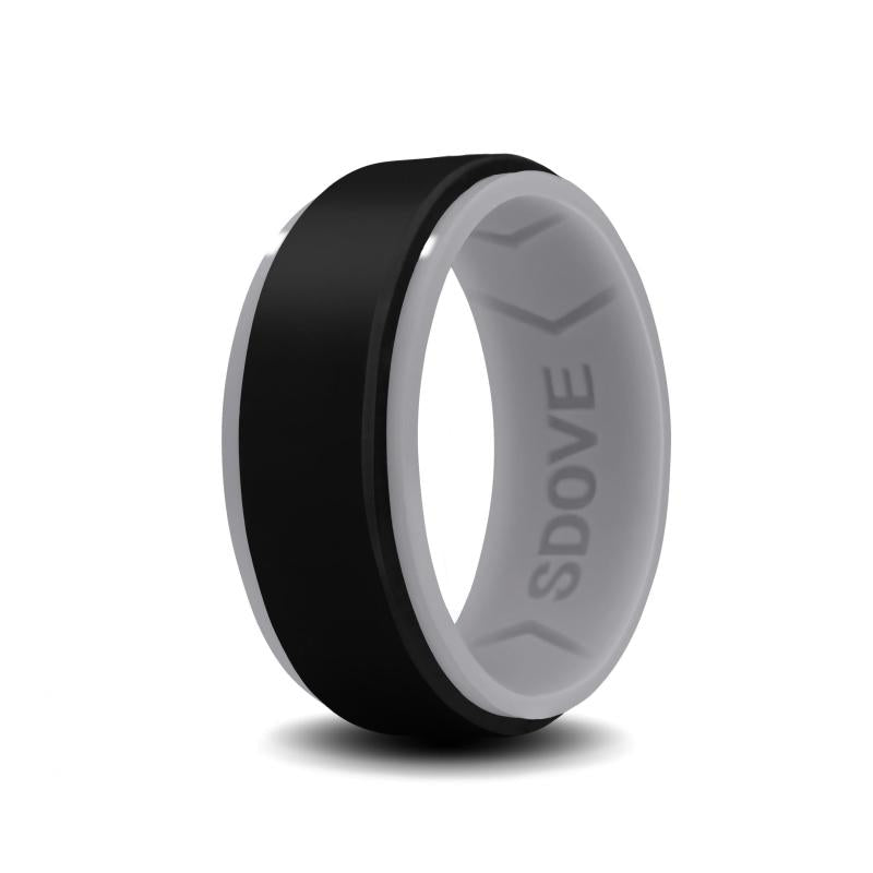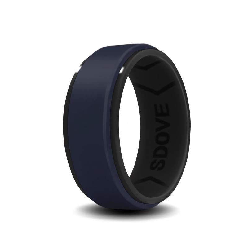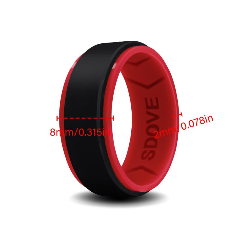 This men's silicone ring is perfect for outdoor activities and weddings. It is 8mm wide, 2mm thick, and designed with a breathable two-tone style.
