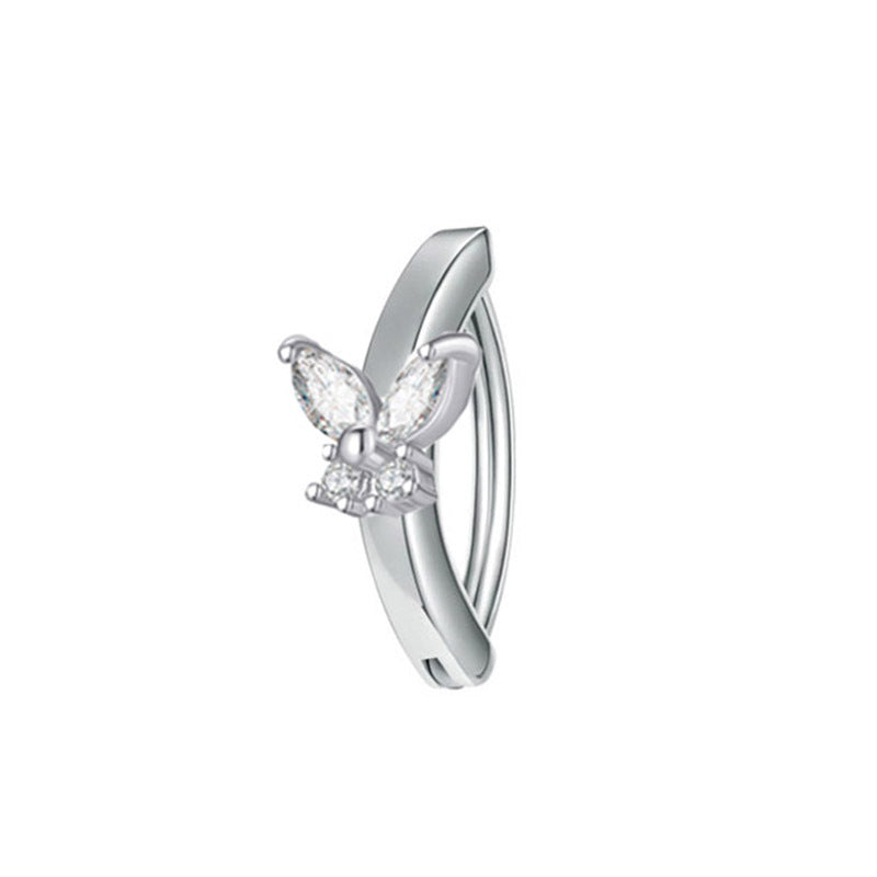 Enhance your beach look with this stunning butterfly belly button buckle ring featuring zircon inlays. Perfect for summer body piercings.