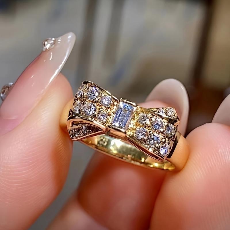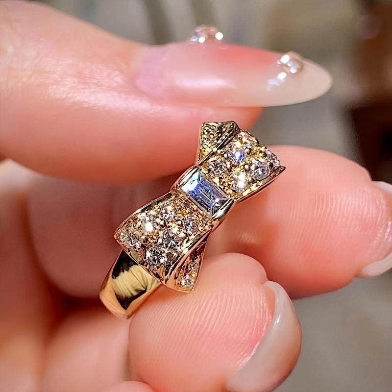 Add a touch of elegance to your outfit with this butterfly bow ring featuring synthetic zirconia stones. Perfect for daily wear, parties, and vacations.