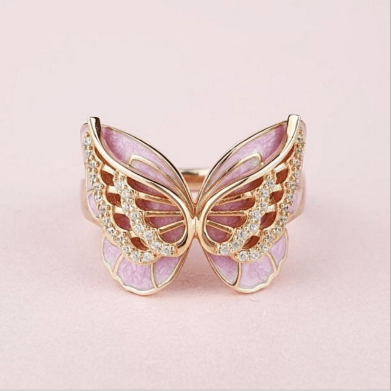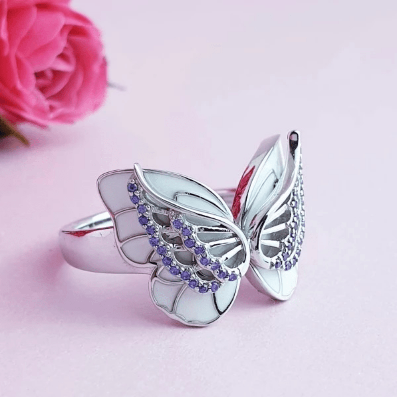 Add a touch of elegance to your outfit with this butterfly animal ring. It features an artificial gemstone that adds a sophisticated charm to your look.