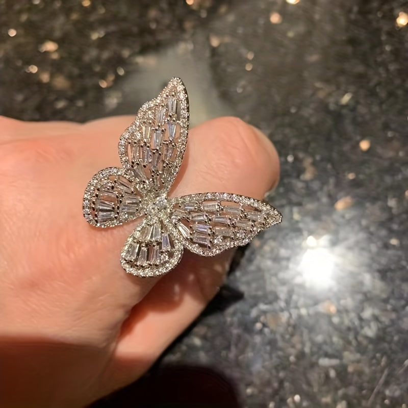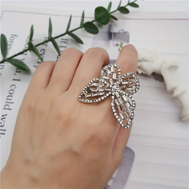 Elevate your daily outfits with this stunning butterfly ring featuring inlaid gemstone. Perfect for parties or casual wear, this adjustable cuff ring is a must-have for any female.