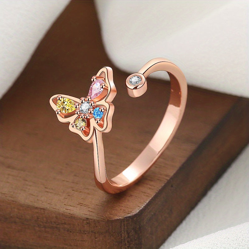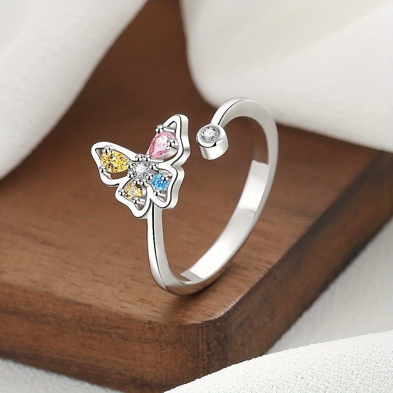 Add a touch of elegance to your outfits with this butterfly ring featuring shining zircon inlays. Choose from three classic colors to match your daily outfits or wear as a dainty party accessory. Makes a perfect birthday gift for girls.