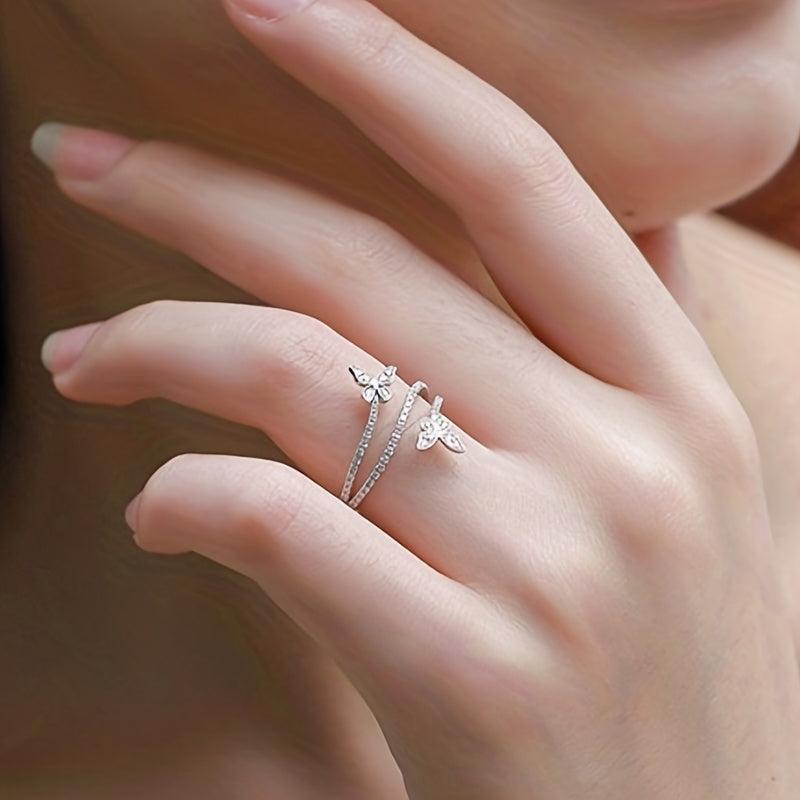 Stylish butterfly ring with CZ inlay, perfect for weddings and daily wear, crafted from high-quality copper.