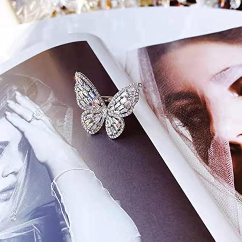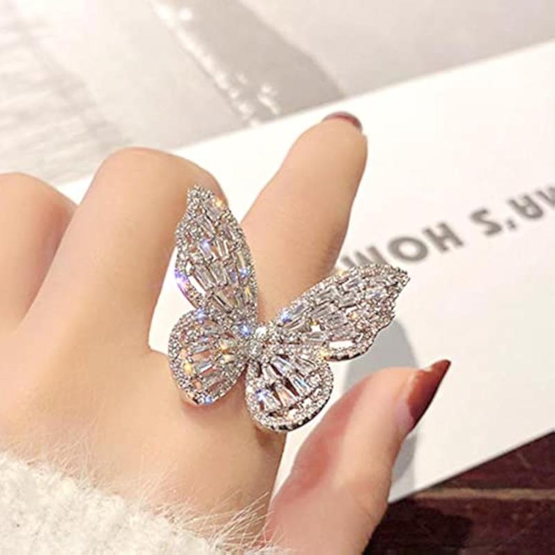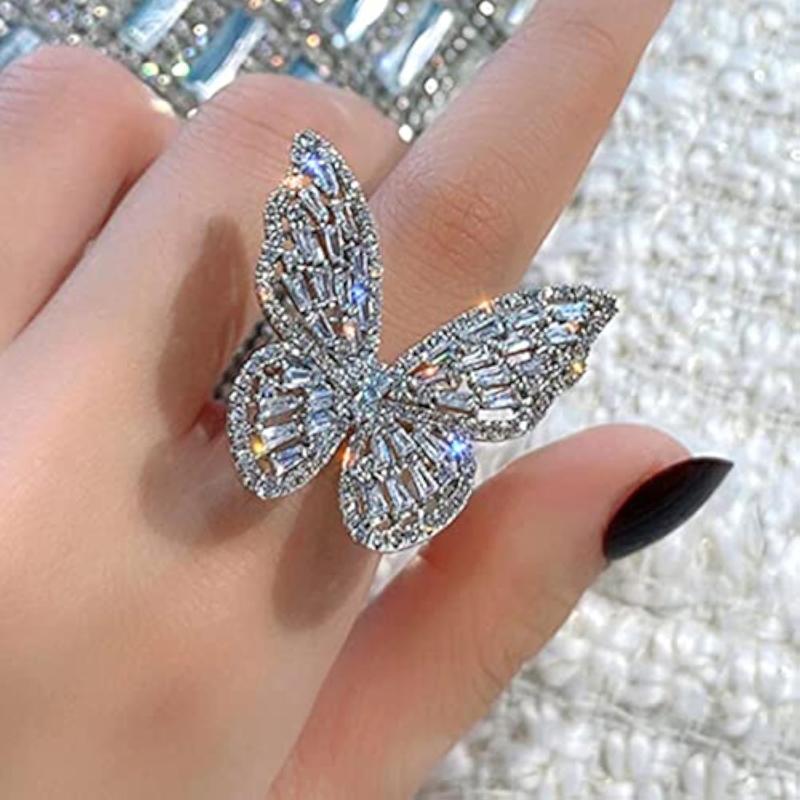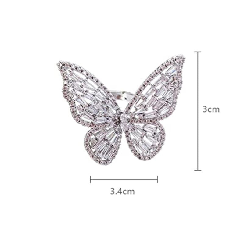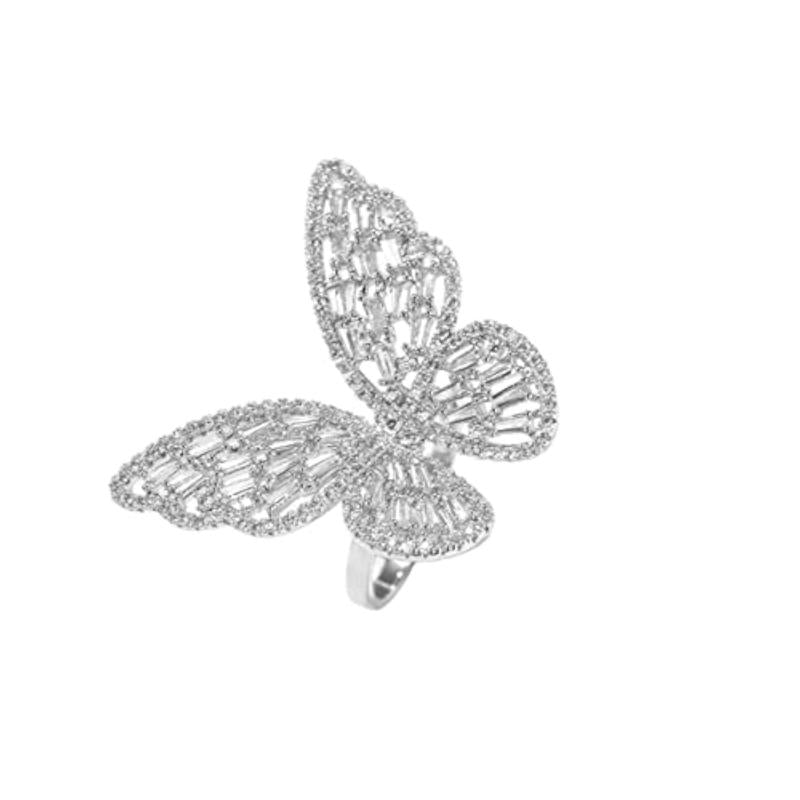Elevate your style with this stunning plated butterfly inspired cocktail ring adorned with sparkling stones.