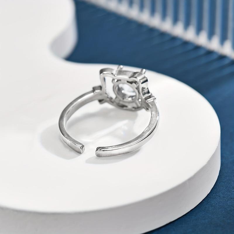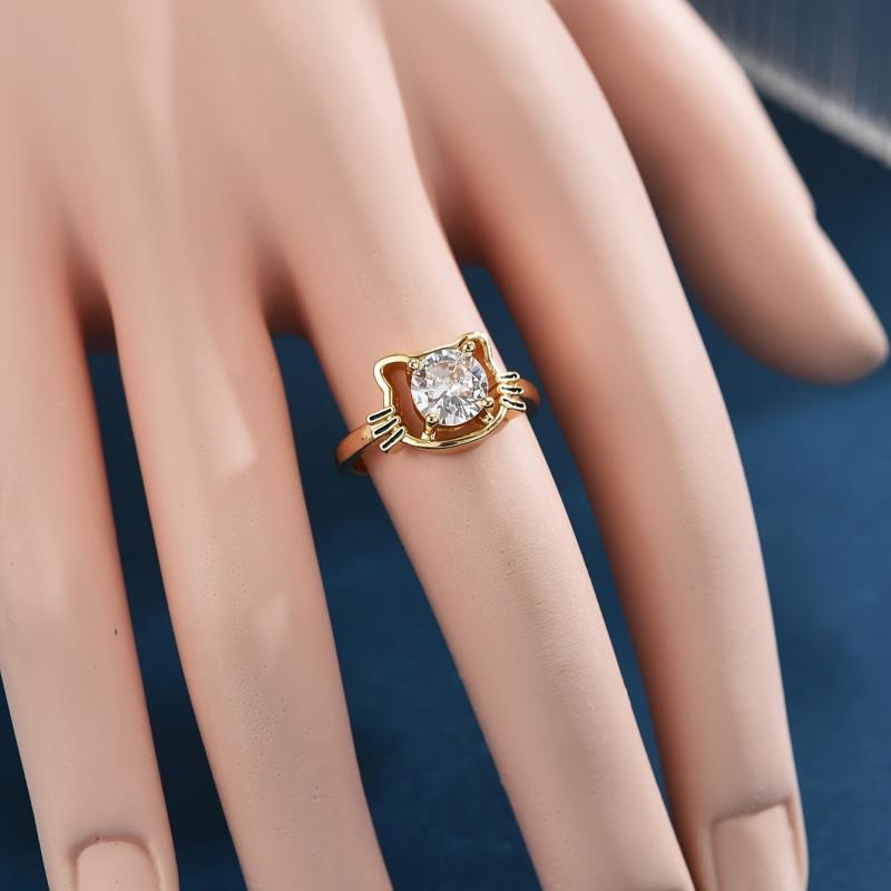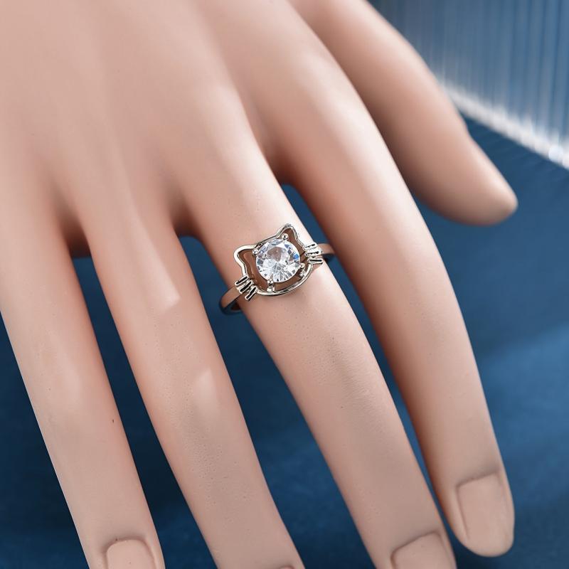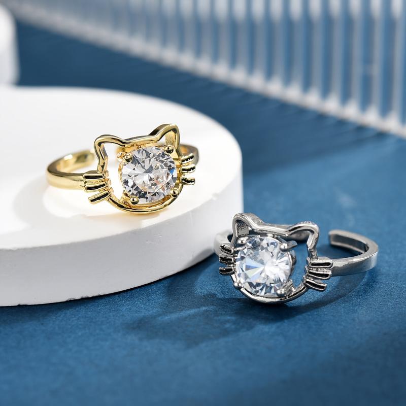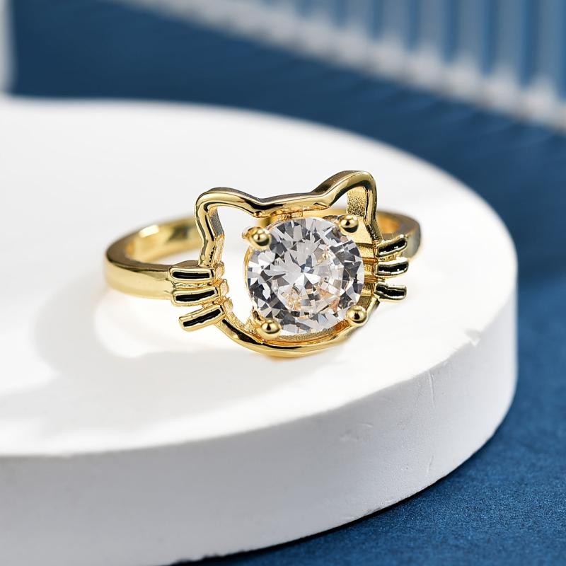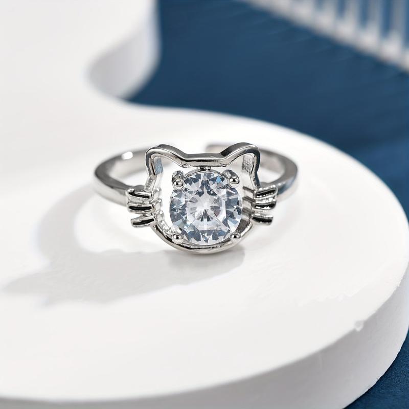 Adorable cartoon cat design ring made of copper with sparkling zirconia stones, perfect for cat lovers.