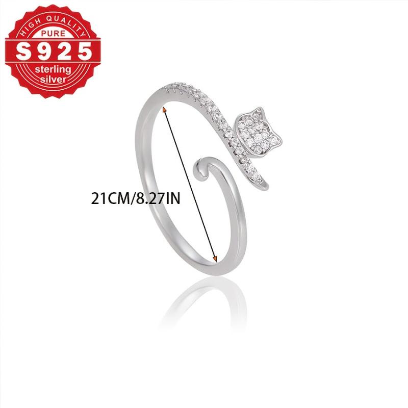 Cat Earrings & Ring Set S925 Silver CZ Allergy-Free