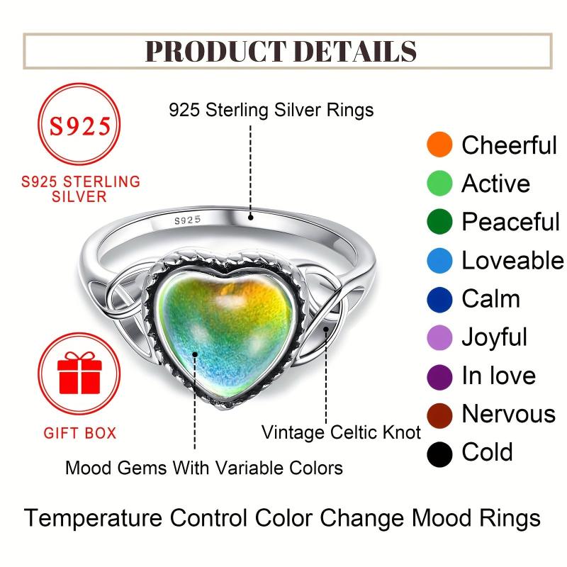 This vintage Celtic knot heart ring is made of S925 sterling silver with a changing opal stone. It has an adjustable band, perfect for daily wear and holiday occasions. Comes with a gift box.
