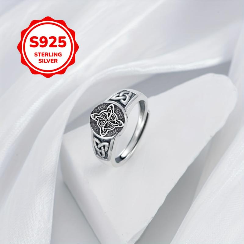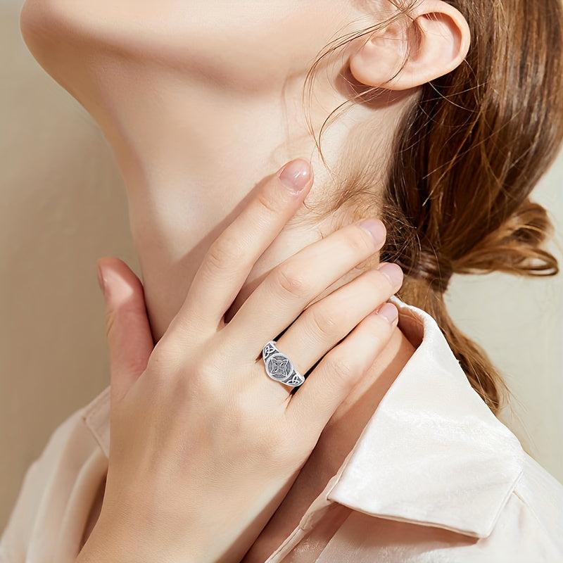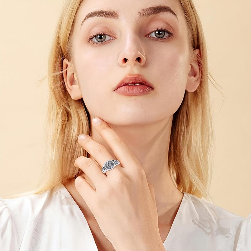 This vintage style ring is perfect for daily wear and makes a great gift for mothers. It is made of S925 sterling silver, low allergy, and weighs 3.7g. The adjustable design ensures a comfortable fit.