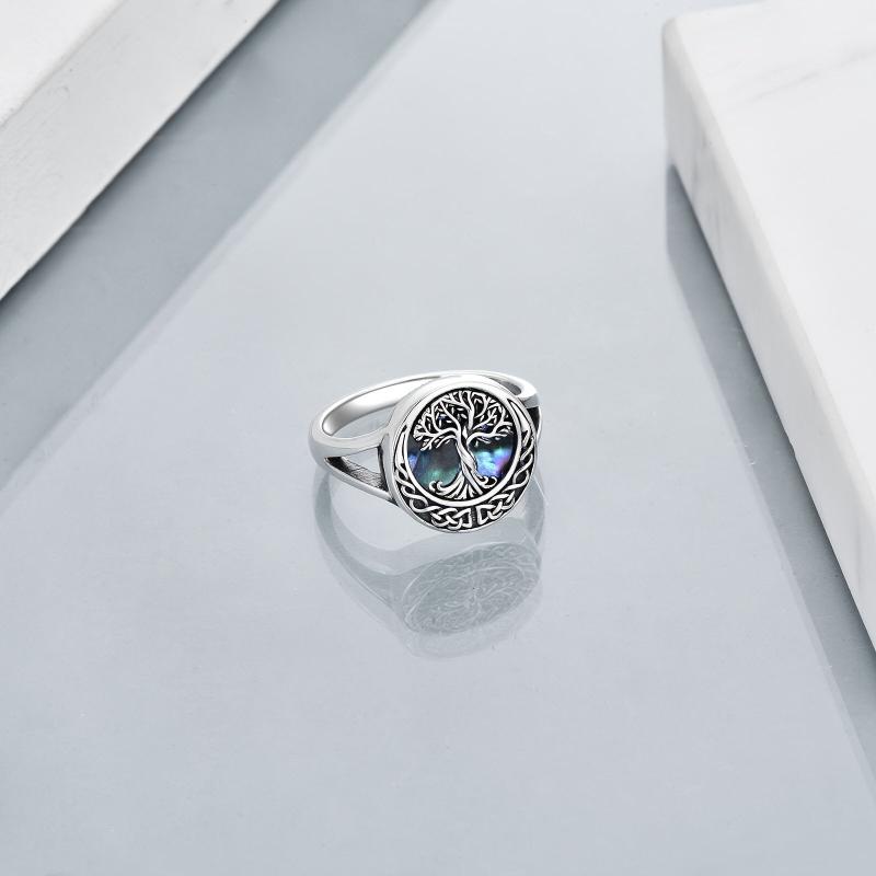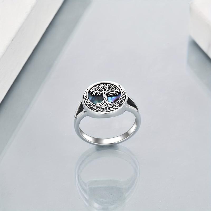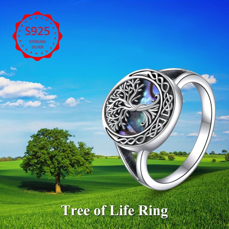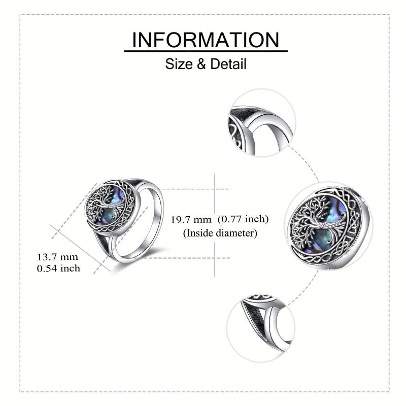 This stunning Celtic Tree of Life ring features intricate details and a beautiful abalone shell inlay. Made of high-quality 925 sterling silver, this ring is a symbol of family and connection.