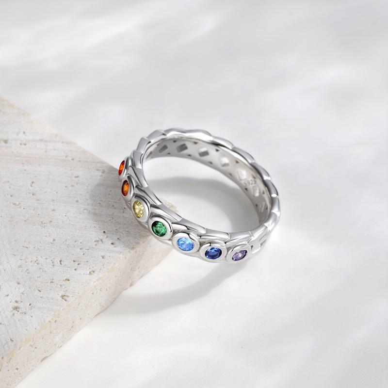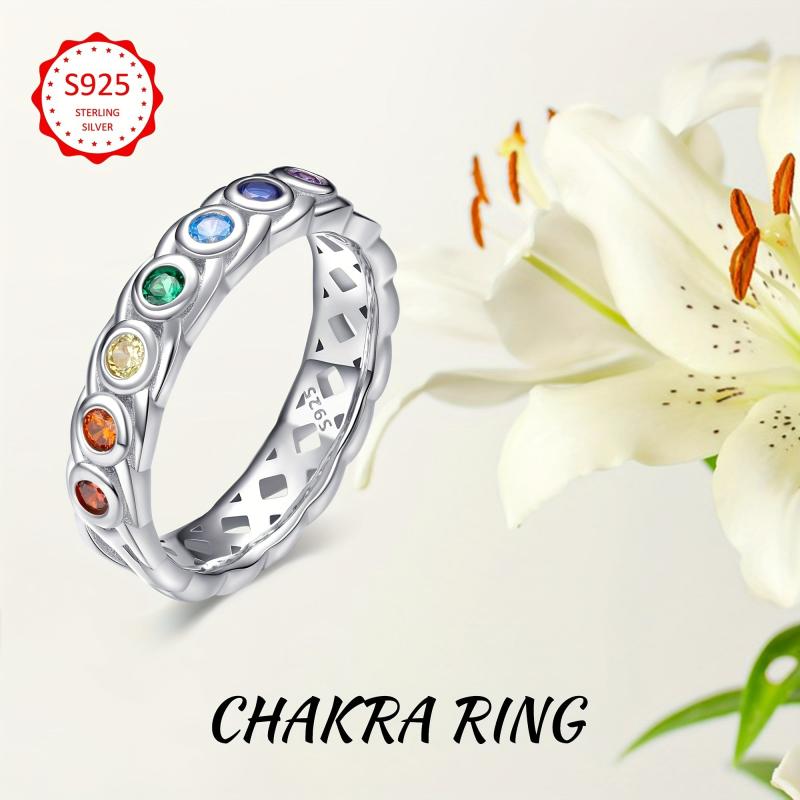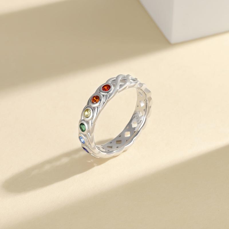 This stunning sterling silver ring features 7 colorful chakra stones set in an intricate Irish Celtic Knot design. Perfect for chakra healing and energy balancing. Ideal jewelry for women and girls.