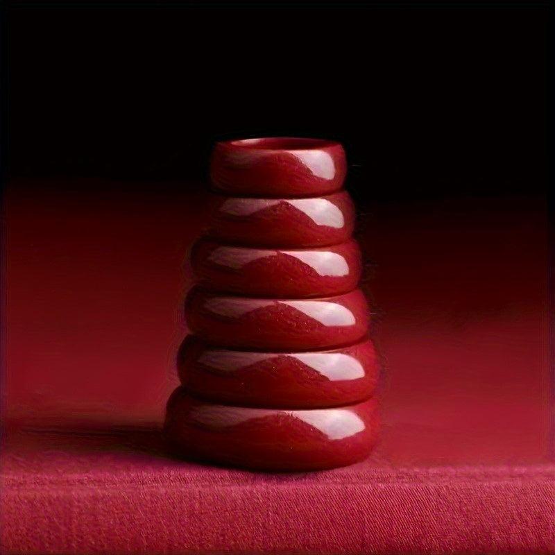 This set includes a women's cinnabar ring and a men's small tail ring. Both rings have a low content of cinnabar, making them safe and stylish accessories.