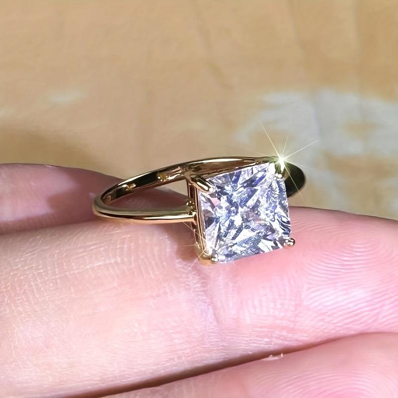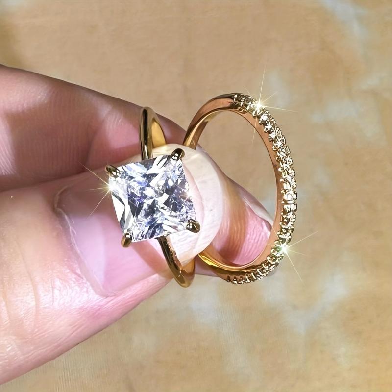 This two-piece engagement ring set features a large cubic zirconia stone that sparkles beautifully. The ultra lightweight design ensures comfortable wear.