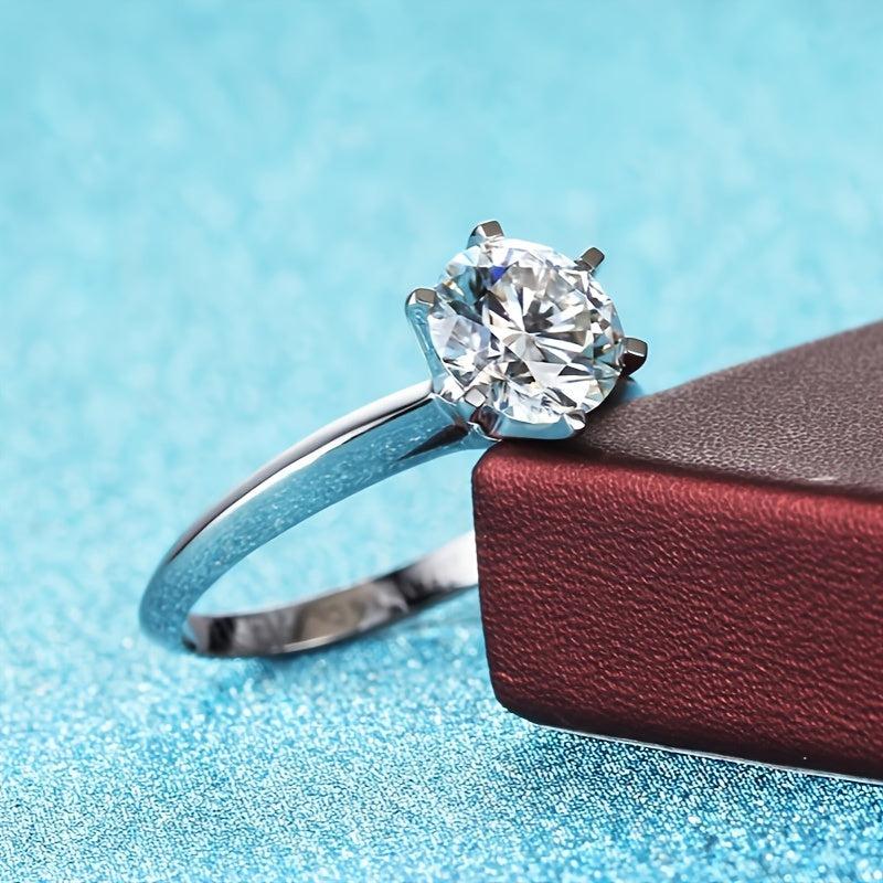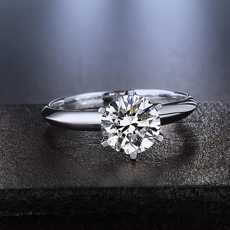 Elegant and versatile, this engagement ring features a round cut synthetic zirconia set in a glittering copper band. Hypoallergenic and ideal for daily wear.