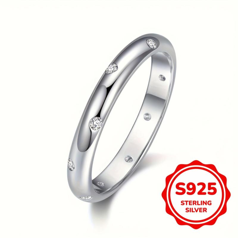 This classic wedding ring features a smooth face and is made of sterling silver with synthetic zirconia. Perfect for special occasions or everyday wear.