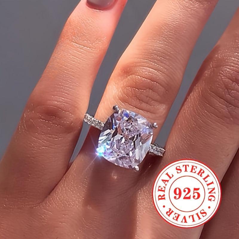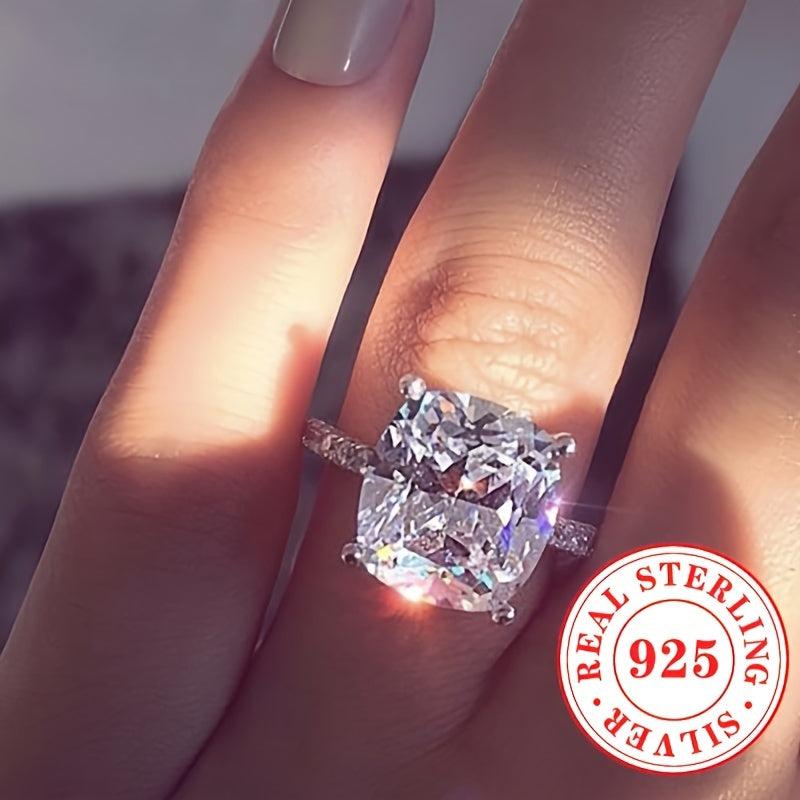 Elegant women's engagement ring featuring a square round cubic zirconia stone set in a 4-prong design. Made of S925 sterling silver. Perfect as a wedding band or gift. Note: Does not come in a box.