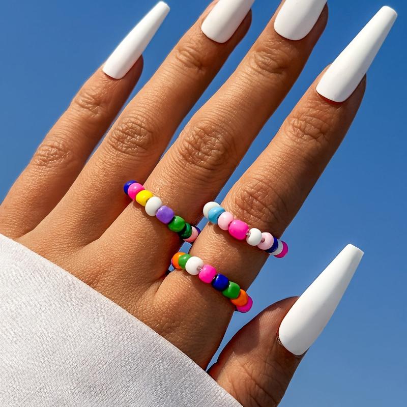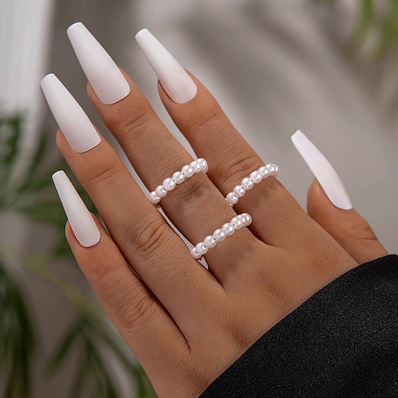 Elevate your style with this set of 3 classy stacking bead rings featuring artificial pearls. Perfect for matching daily outfits or adding elegance to party ensembles. Adjustable design for a comfortable fit. Makes a great jewelry gift for females.