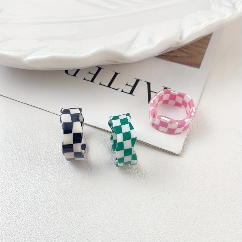 These checkerboard wave rings are perfect for daily wear, birthday celebrations, and holidays. Made from high-quality resin, the rings feature a vibrant and eye-catching design.