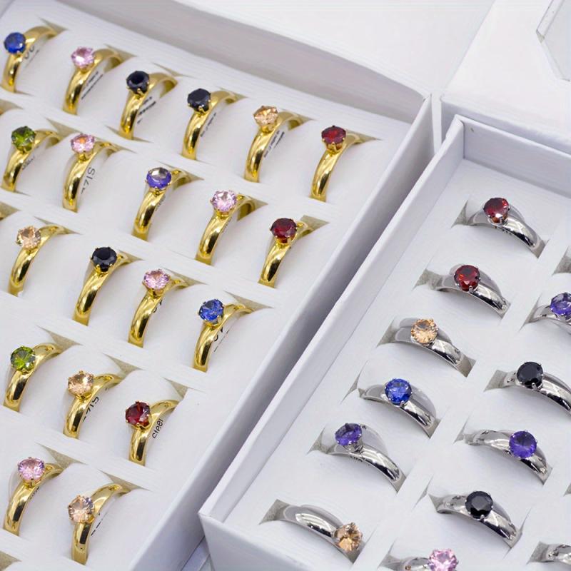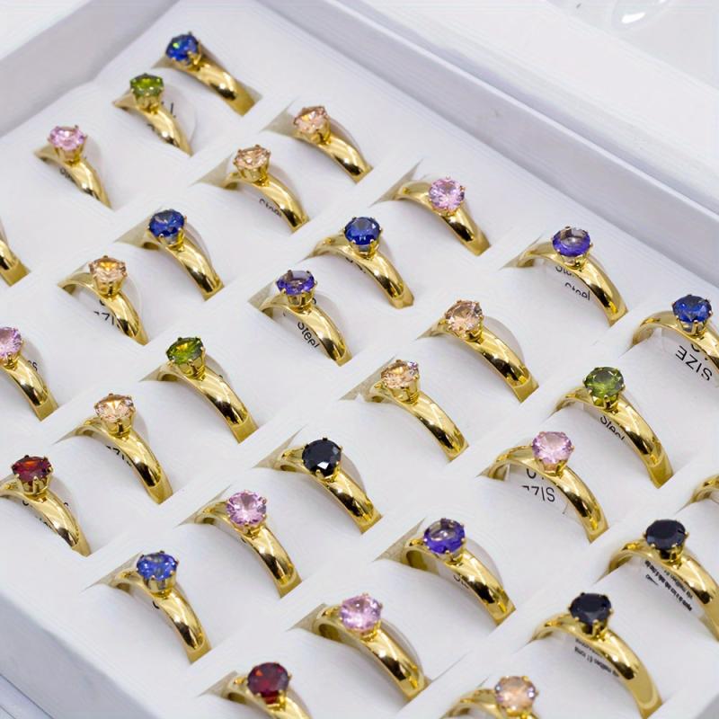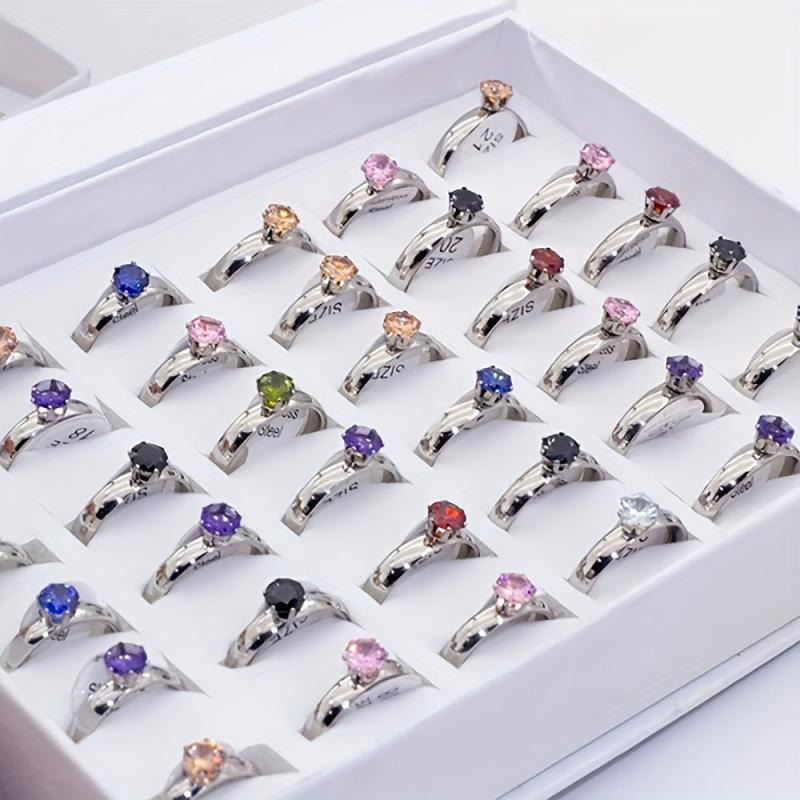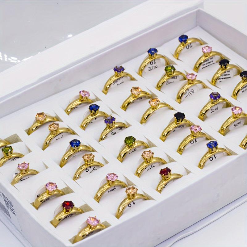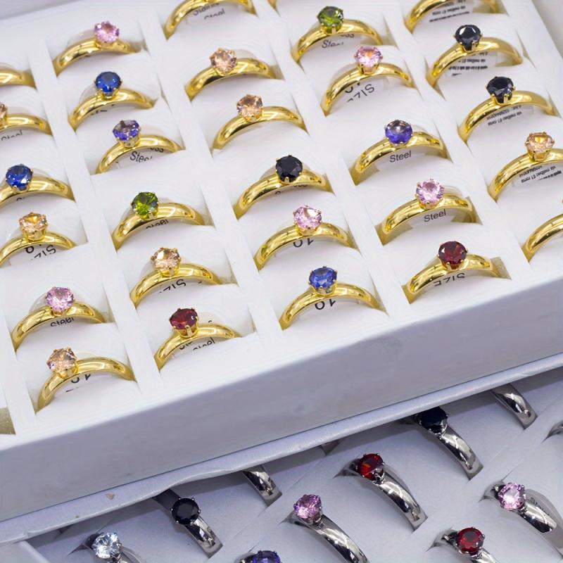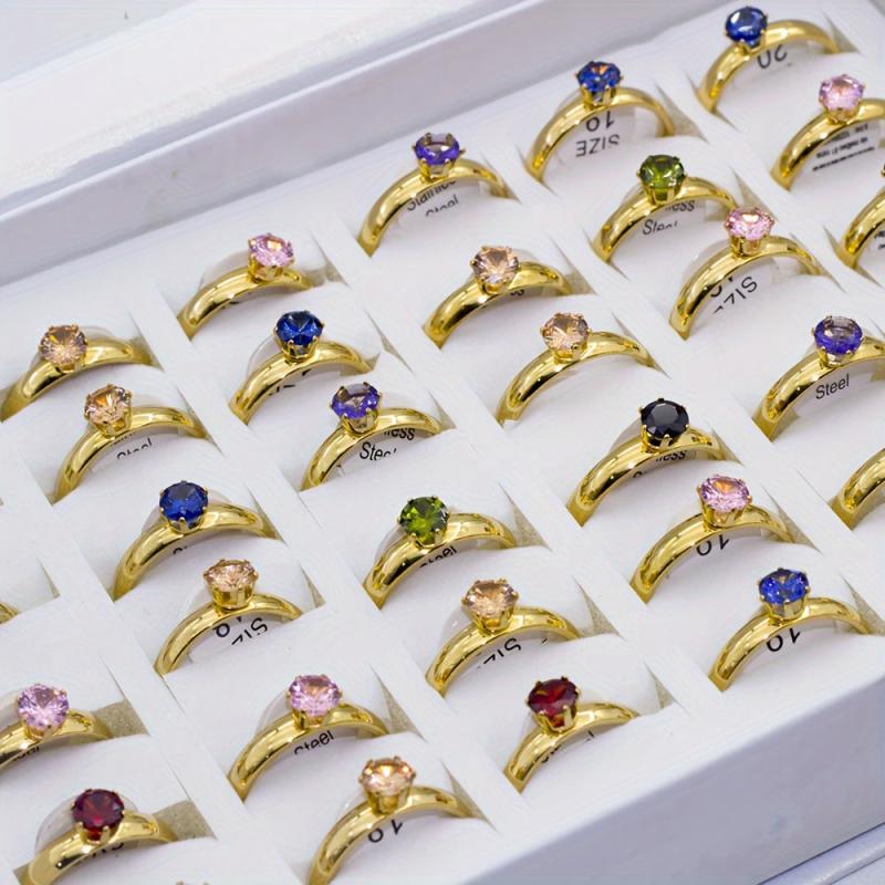 Elegant set of 10 stainless steel rings with vibrant rhinestones, perfect for weddings, engagements, and other special occasions.