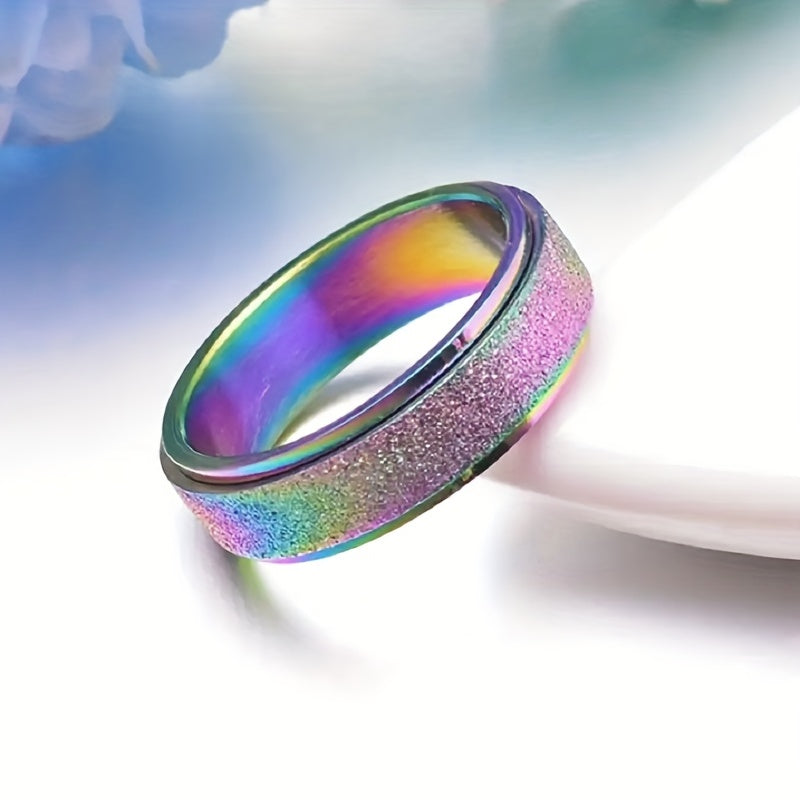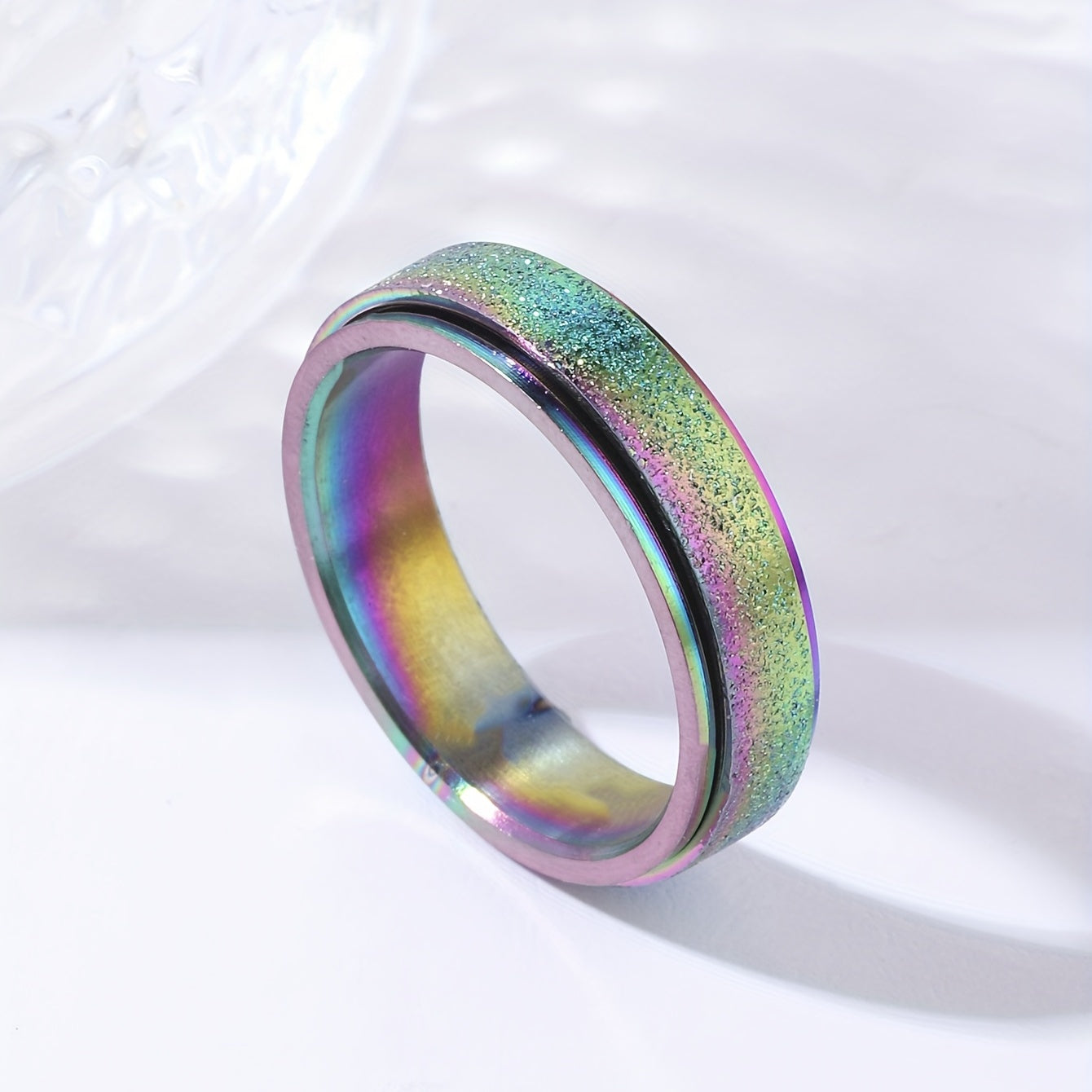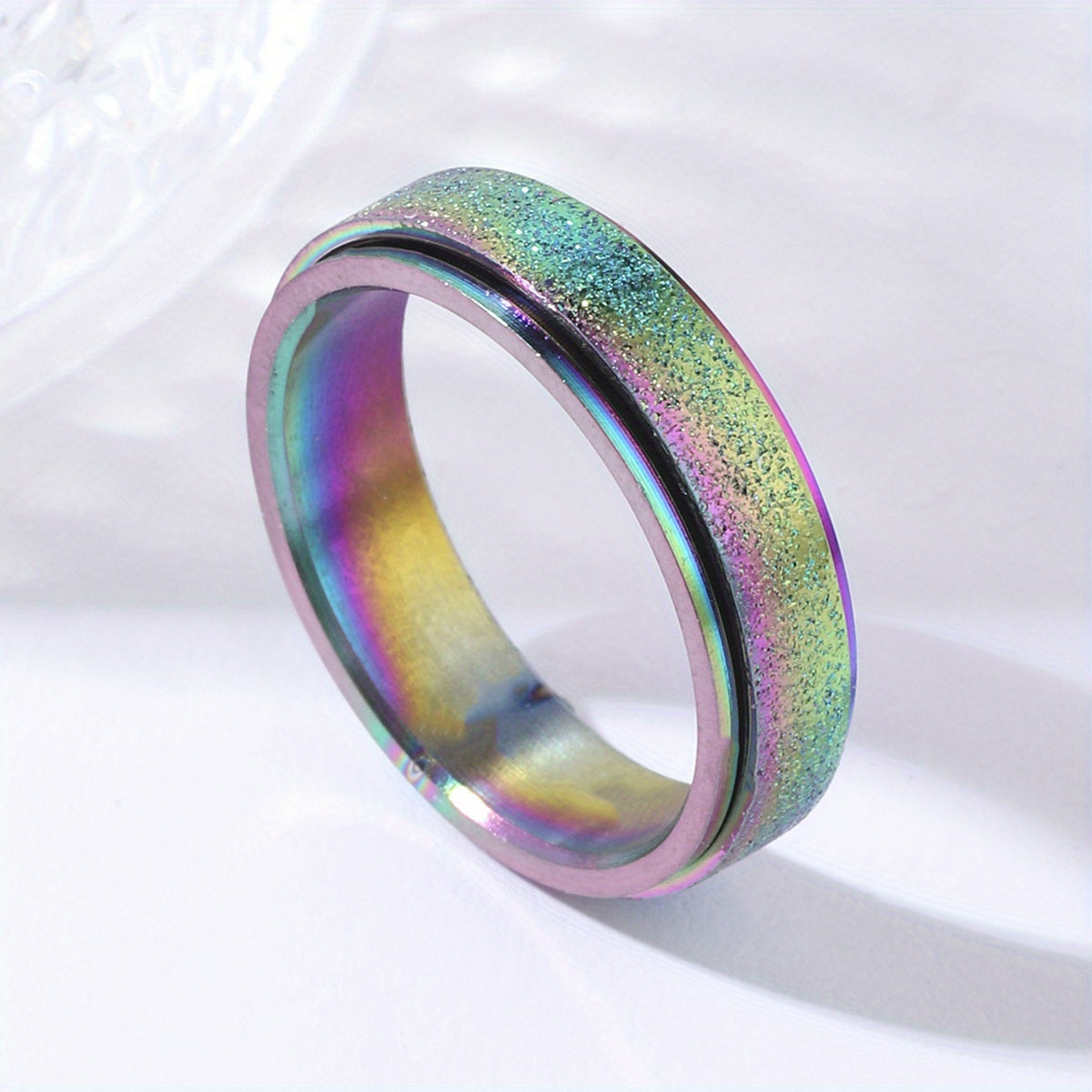 This stylish anxiety ring features a colorful surface that can be rotated. Made of durable stainless steel, it is perfect for daily wear and complements any outfit.