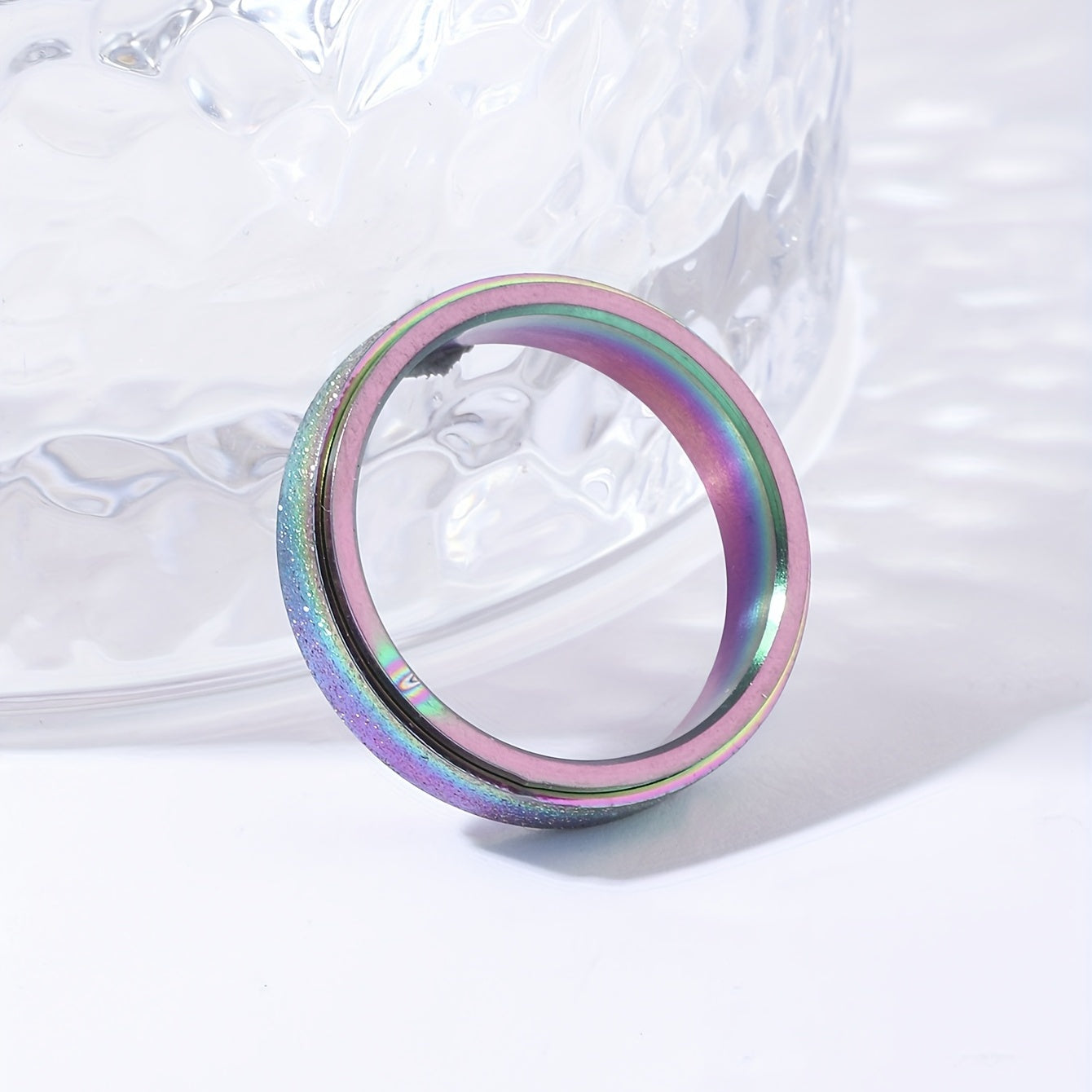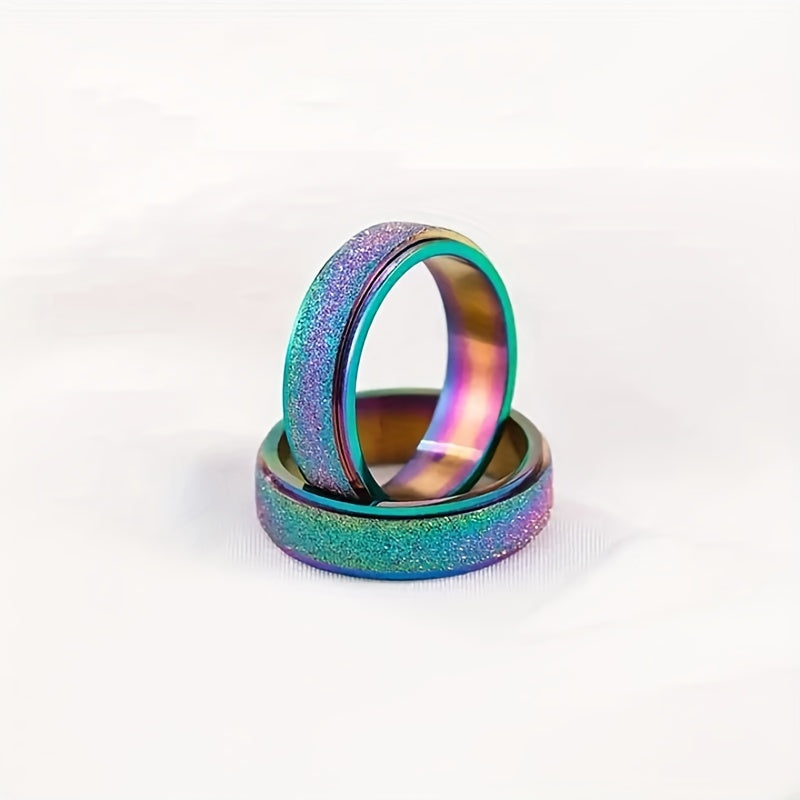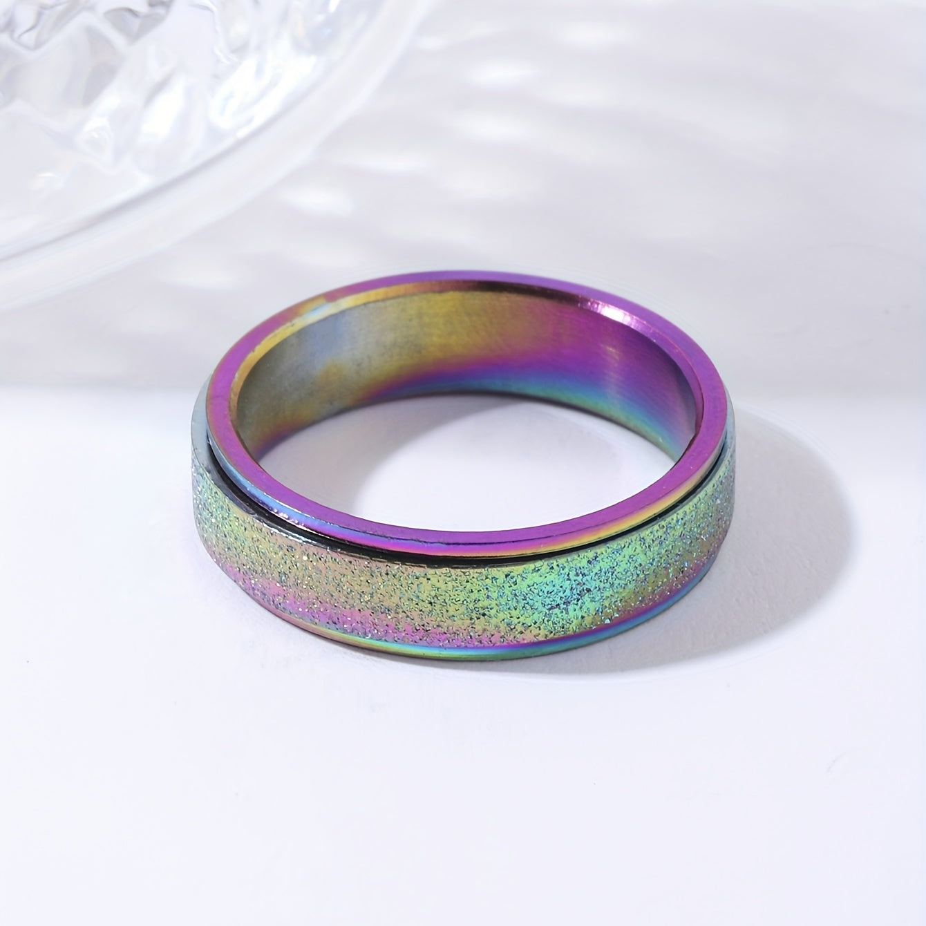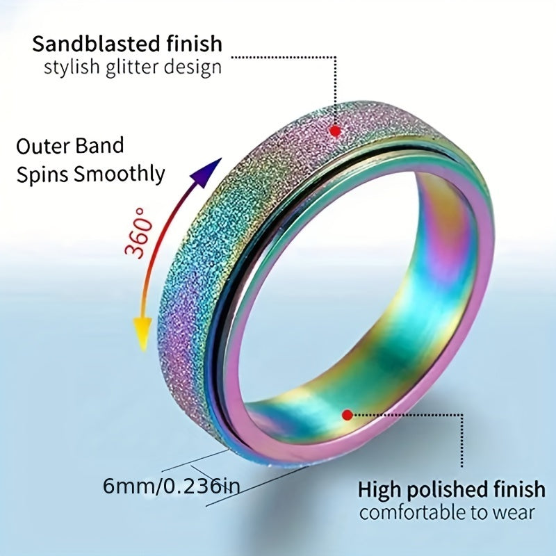 This stylish anxiety ring features a colorful surface that can be rotated. Made of durable stainless steel, it is perfect for daily wear and complements any outfit.
