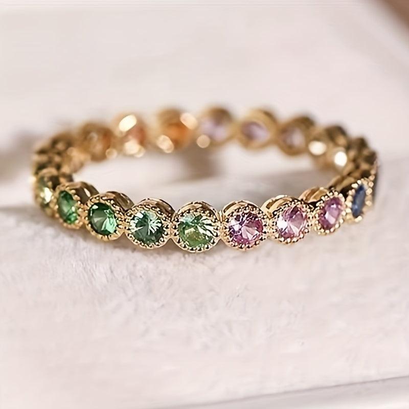 Elevate your style with this stunning niche finger ring adorned with colorful synthetic gems. Perfect accessory to add a pop of color to your outfit.
