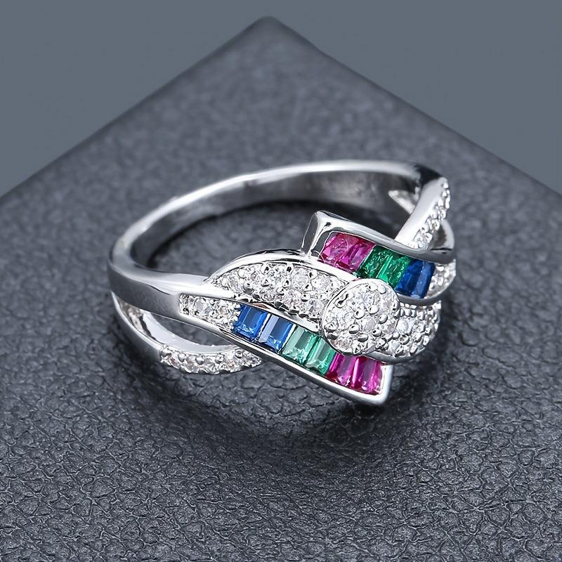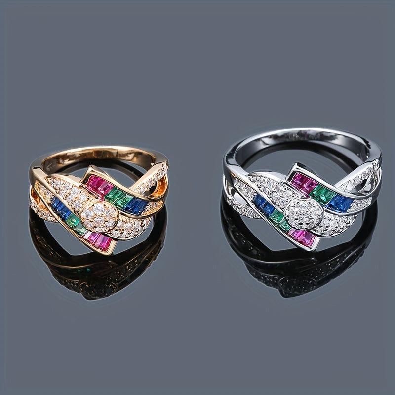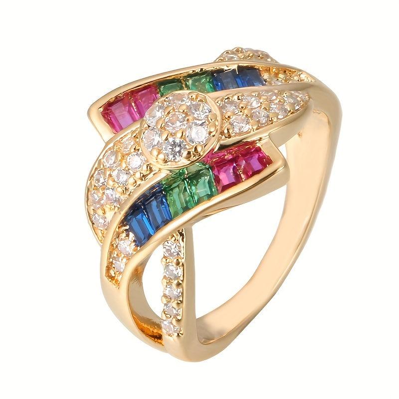 Elegant and stylish ring featuring synthetic zirconia gemstones in a copper band. Perfect for daily wear or gifting, this versatile jewelry piece adds a pop of color and sparkle to any outfit.