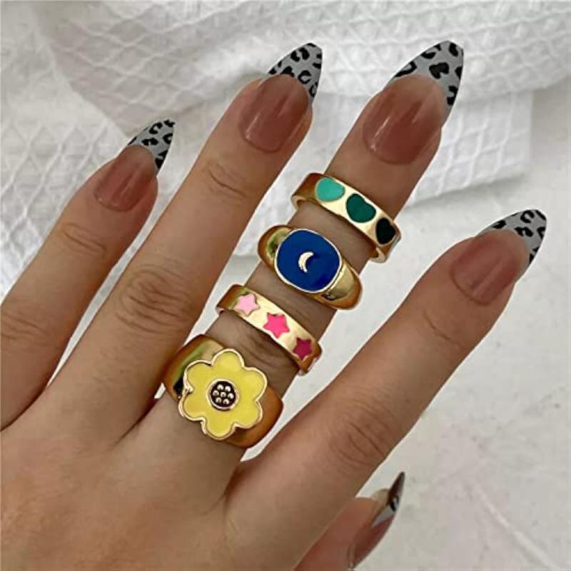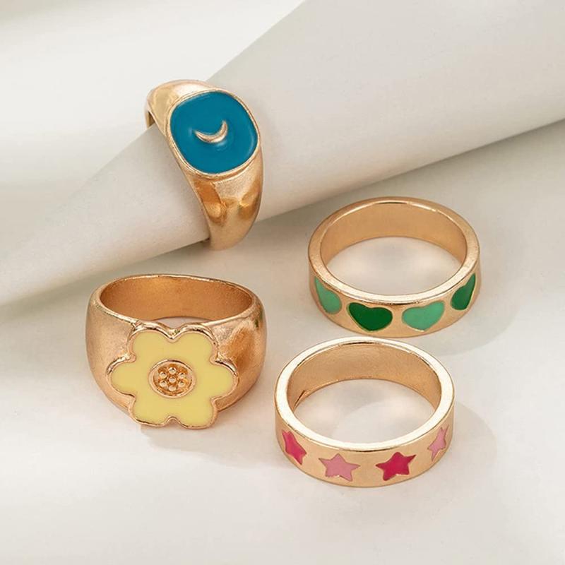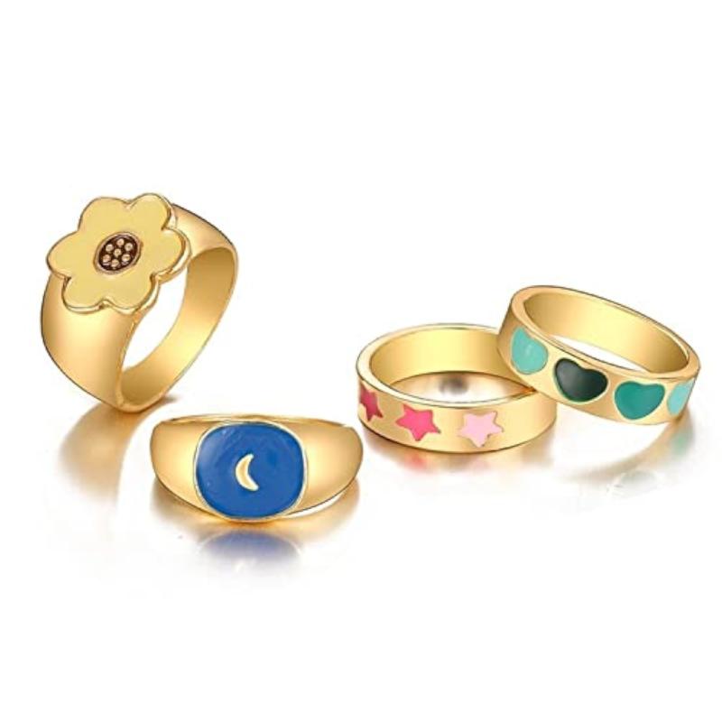 Elevate your style with this set of 4 modern stackable rings. Perfect for mixing and matching, these plated rings add a touch of elegance to any outfit.