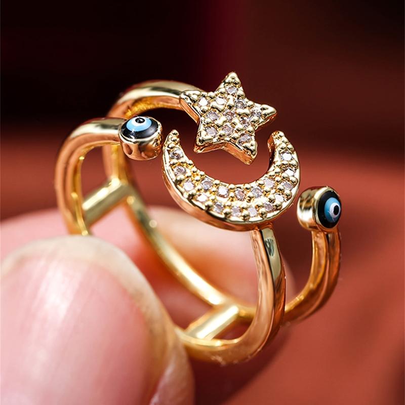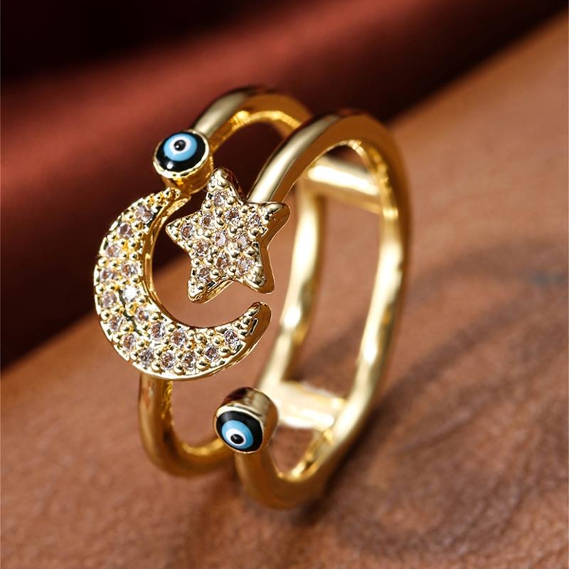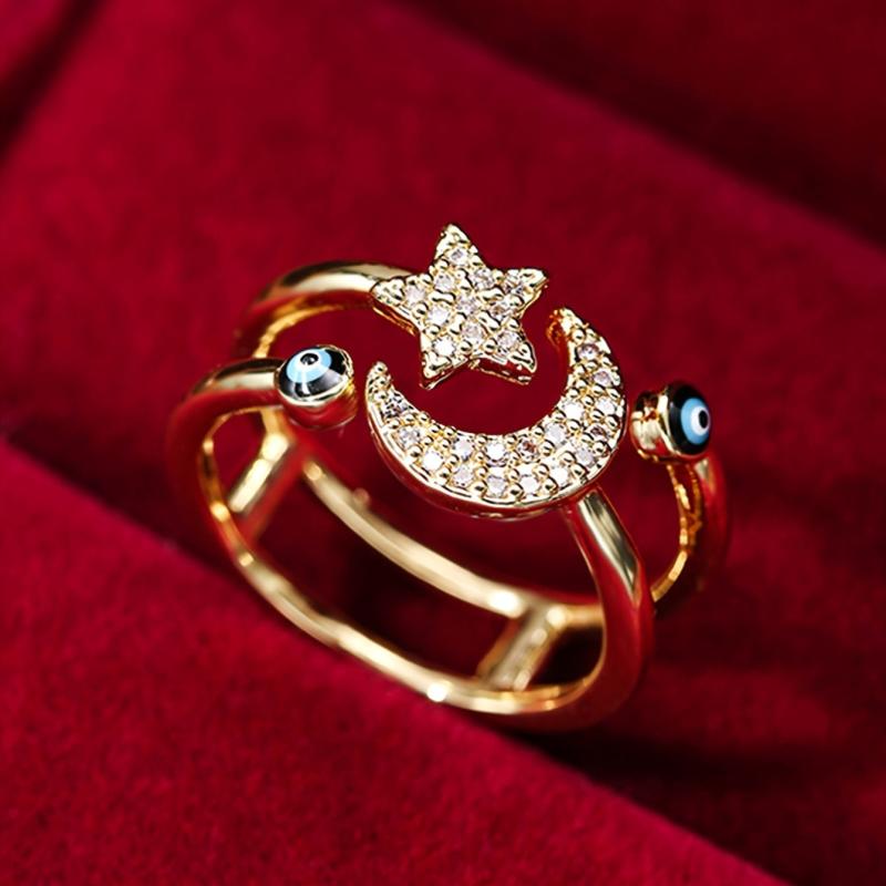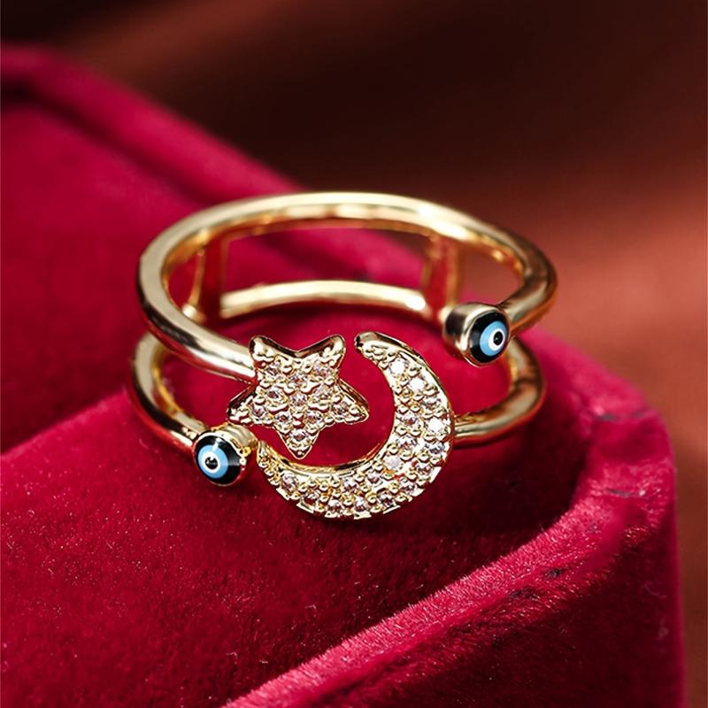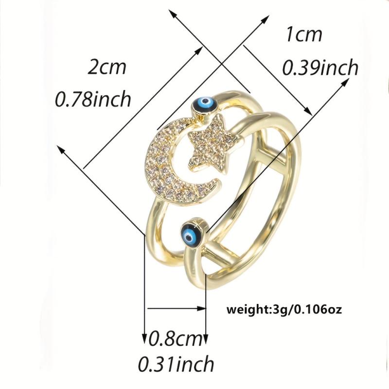 Elevate your style with this fashionable party and vacation accessory. This open ring features a synthetic zirconia star and moon design, adding a touch of celestial charm to any outfit.
