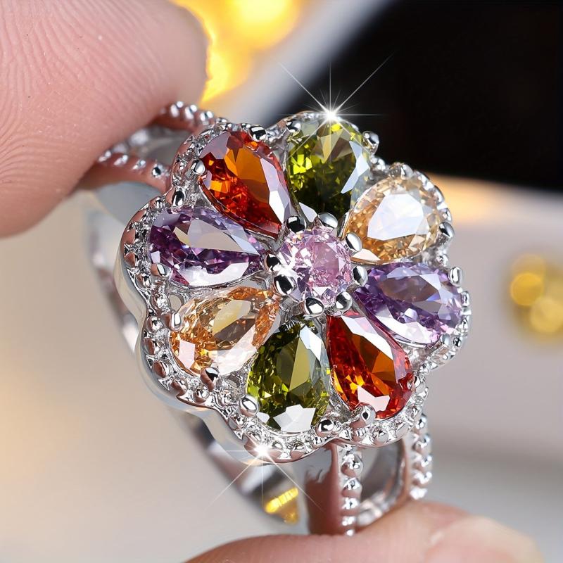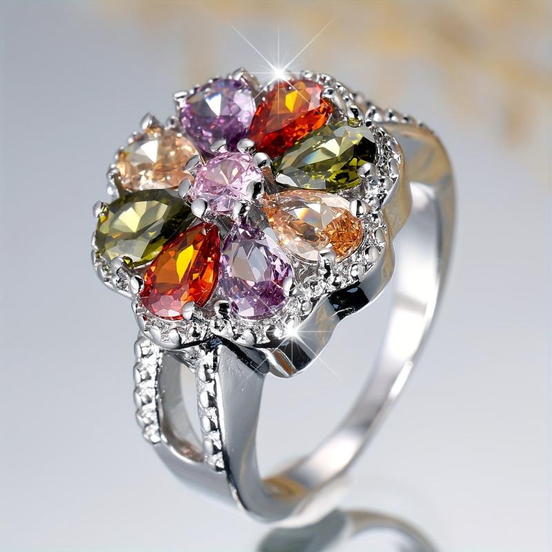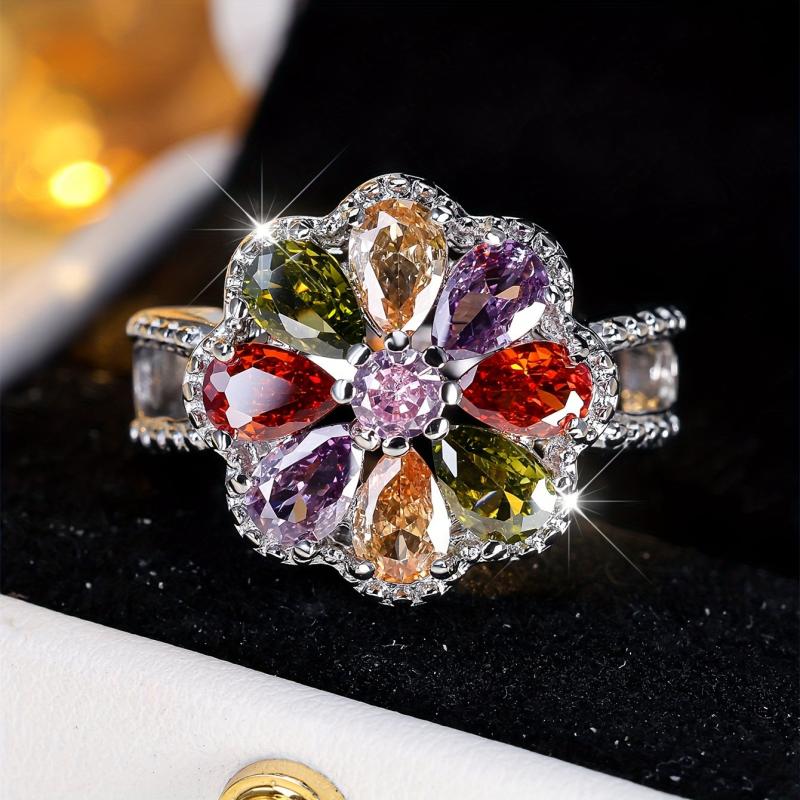This stunning copper floral ring features sparkling cubic zirconia stones, making it the perfect accessory for weddings, parties, and anniversaries.