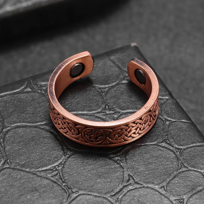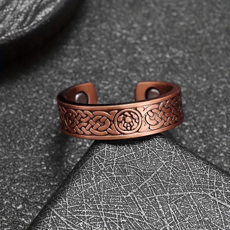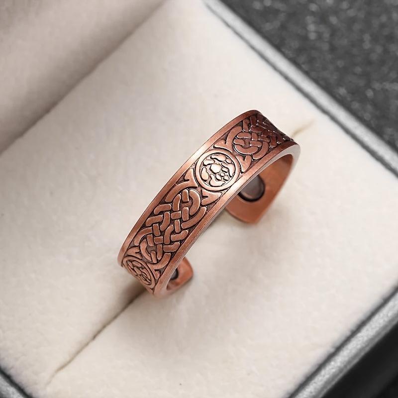 This open cuff ring features a stylish copper geometric cloud pattern that is perfect for daily wear. It makes an ideal gift for someone special.