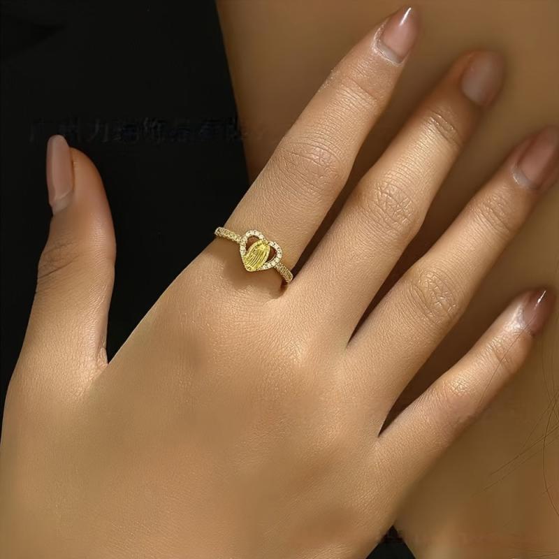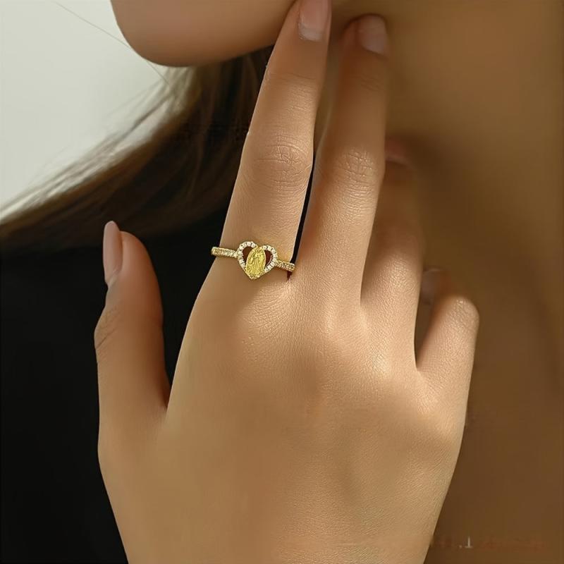 This elegant copper heart ring features a synthetic zirconia inlay, making it perfect for daily wear or special occasions like Valentine's party. A great gift choice for her.