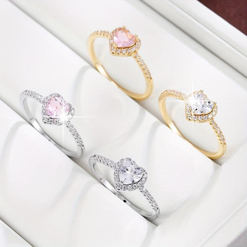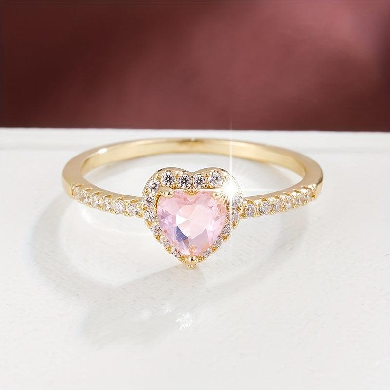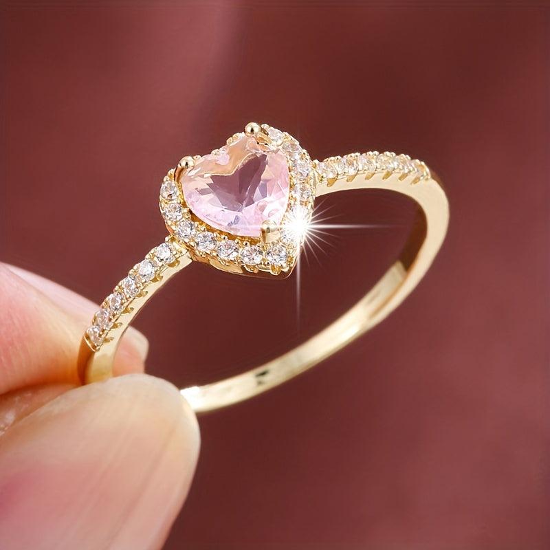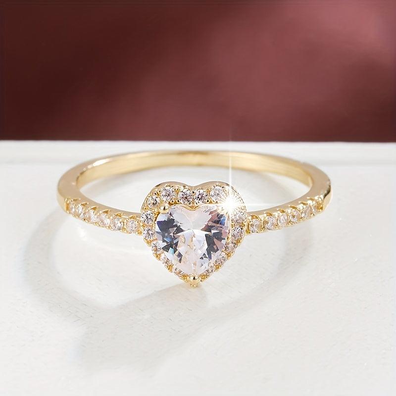 Elegant copper ring featuring a heart-shaped zirconia, perfect for adding a touch of sparkle to any outfit.