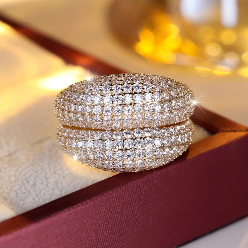 Copper Plated Synthetic Zirconia Ring Women's Fashionable Daily Wear Gift
