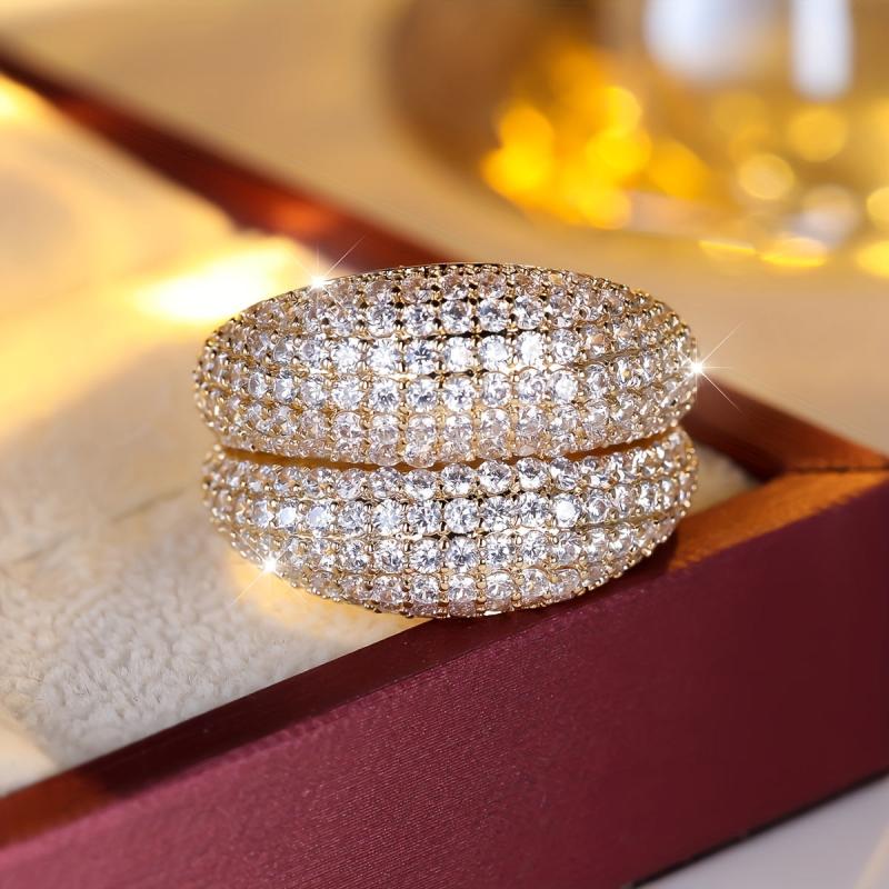 This stylish ring features a copper plated band adorned with full synthetic cubic zirconia stones. Perfect for daily wear and makes a great gift for any occasion. This accessory is versatile and can be worn throughout all seasons.
