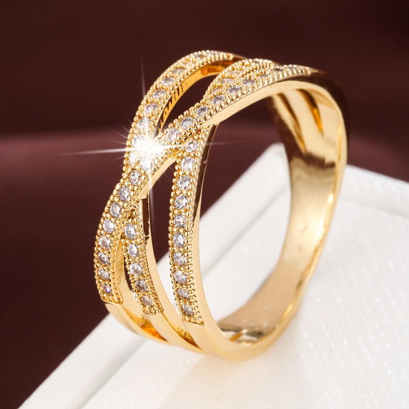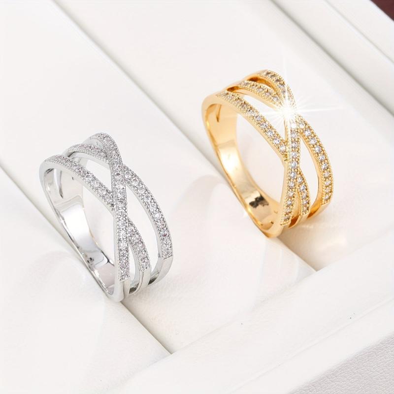 Copper Ring for Women with Cross Line Zirconia Gift Jewelry