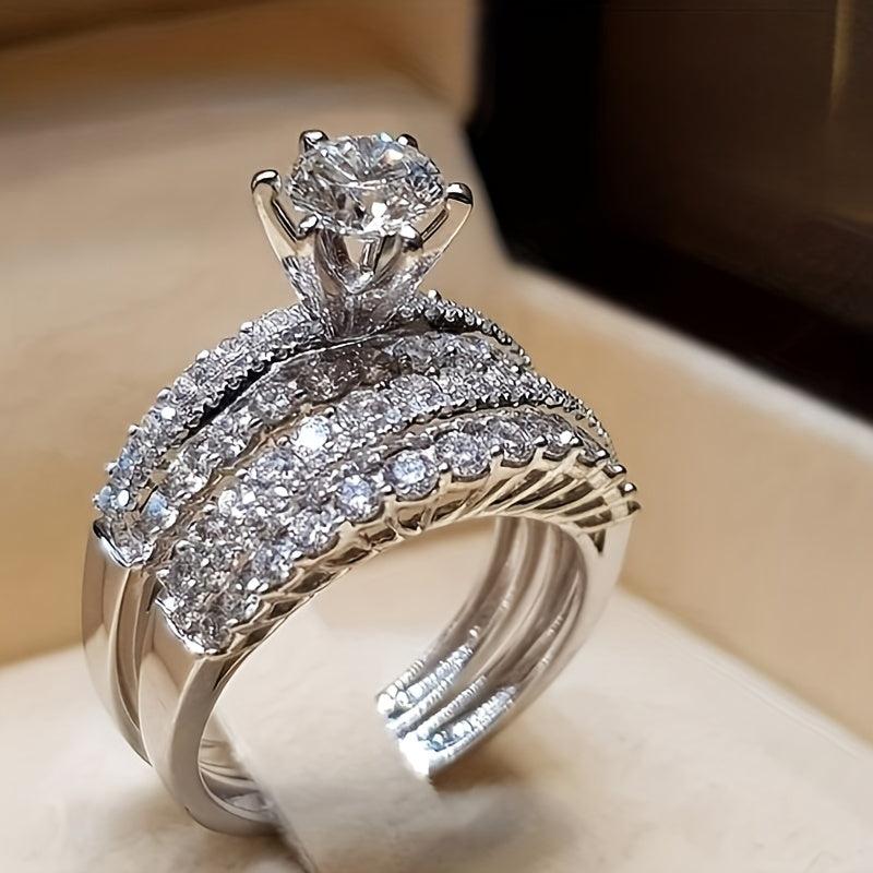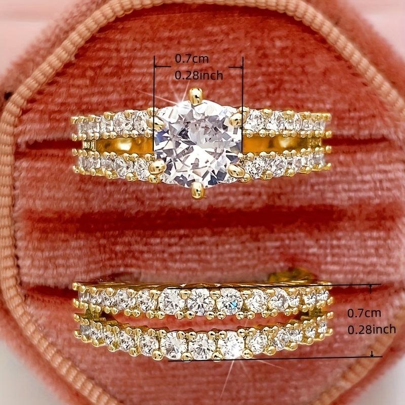 Elevate your look with this stunning 2-piece copper ring set featuring glitter style and 6-prong setting synthetic zirconia stones. Perfect for daily wear, special occasions, and as a wedding gift.