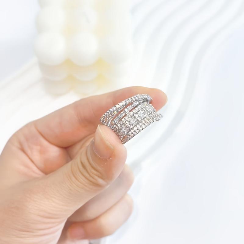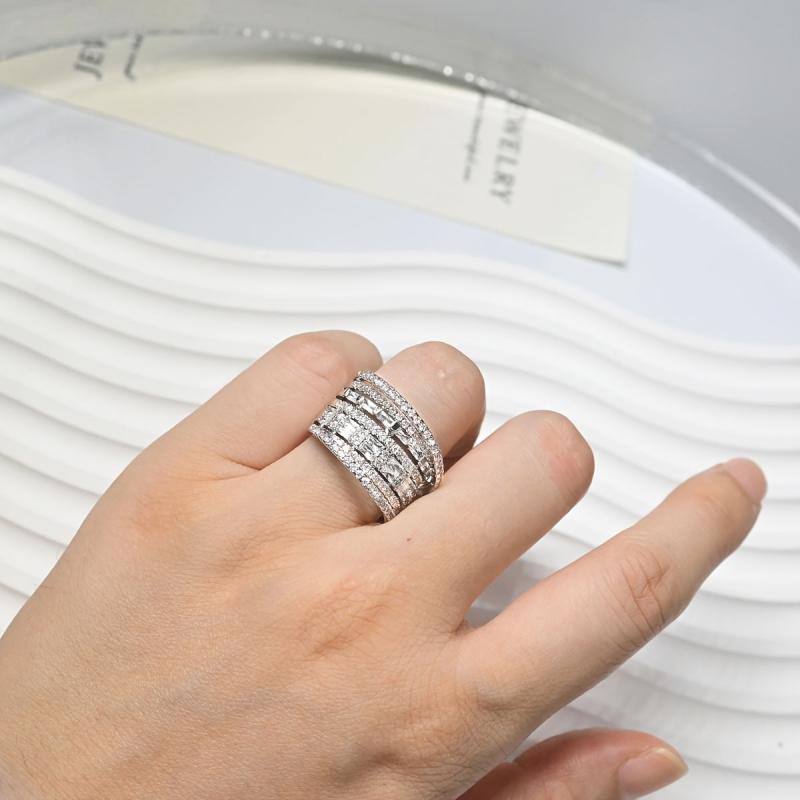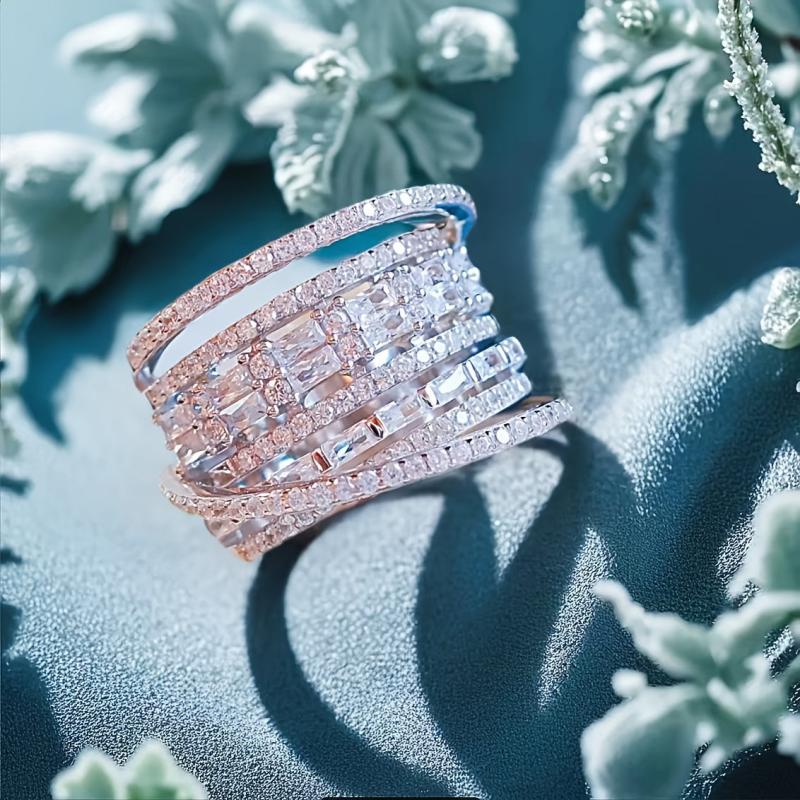 This copper ring features an irregular shape set with sparkling cubic zirconia stones, perfect for parties, dinners, and music festivals.