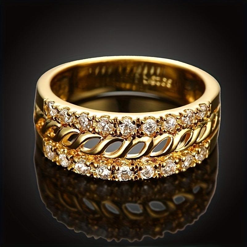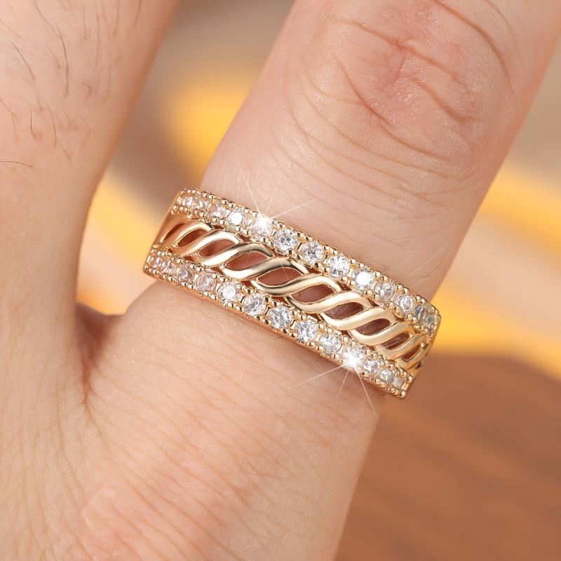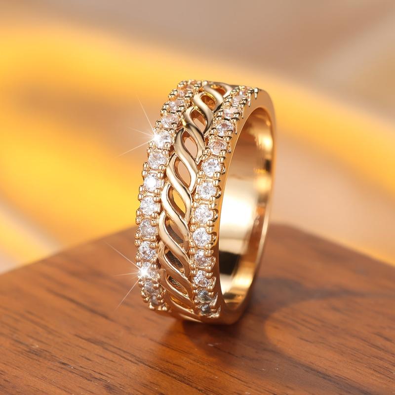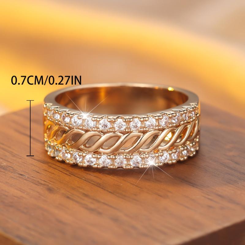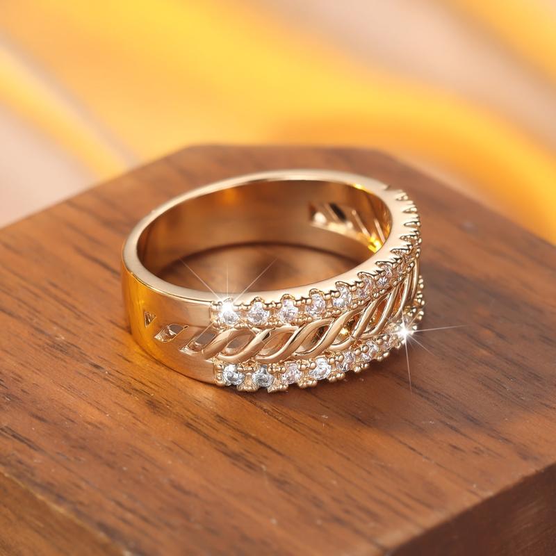 A stylish copper ring featuring synthetic cubic zirconia, perfect for daily wear or party occasions. This ring has no plating, making it durable and long-lasting.