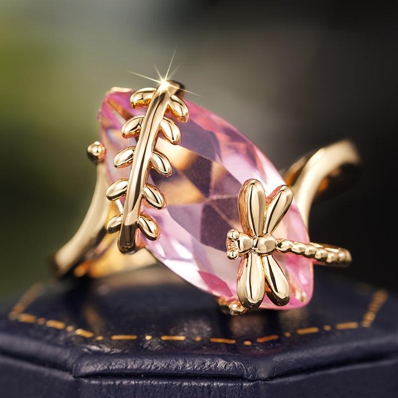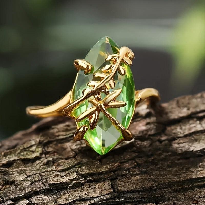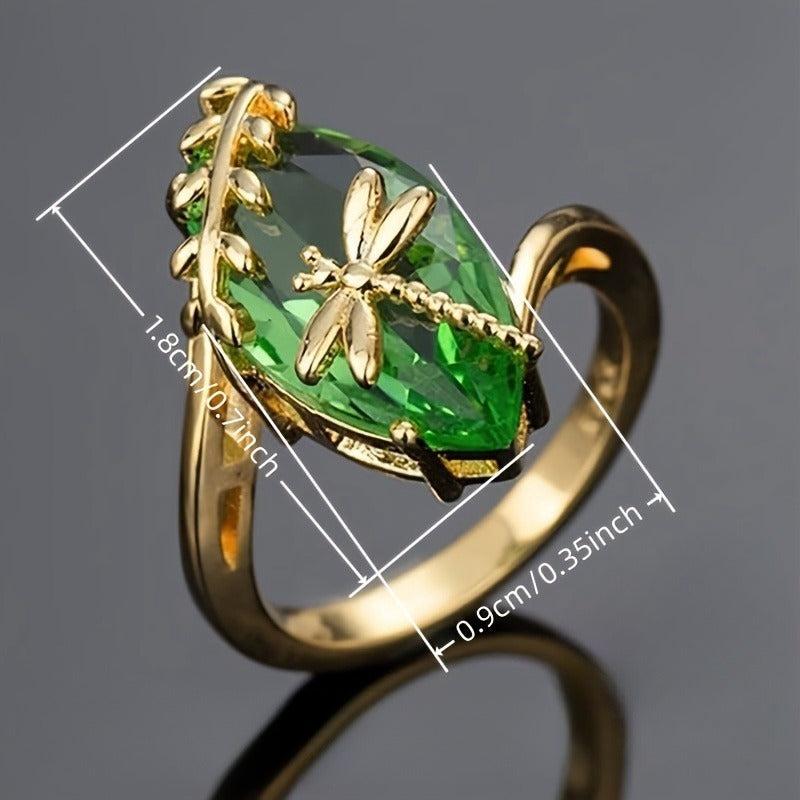 Elegant copper ring featuring a synthetic green gemstone with a dragonfly design, plated in KC golden color. Perfect for daily wear, parties, and vacations.