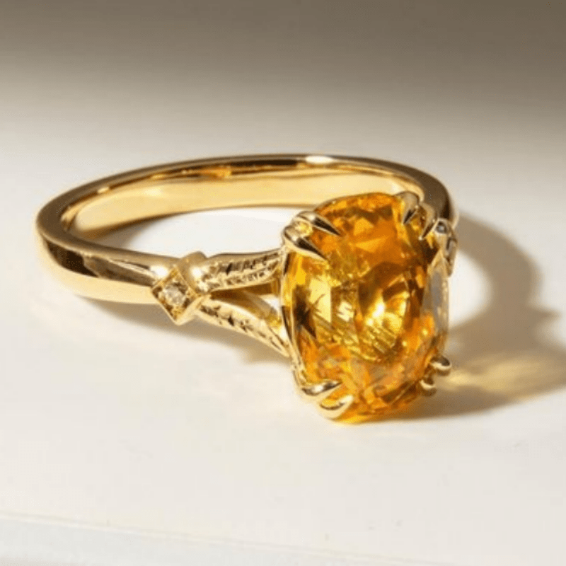 This stunning copper ring features a rectangular cut yellow gemstone synthetic cubic zirconia. It is a perfect Valentine's gift for women with its elegant design.