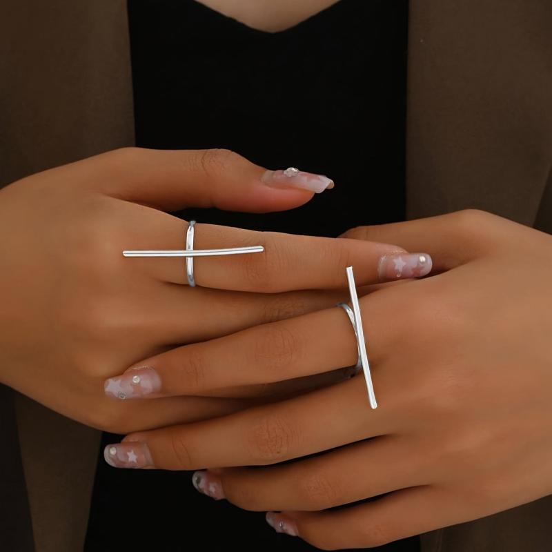 Elegant and modern set of long bar rings crafted from copper and embellished with zirconia accents. Perfect for daily wear or special occasions.