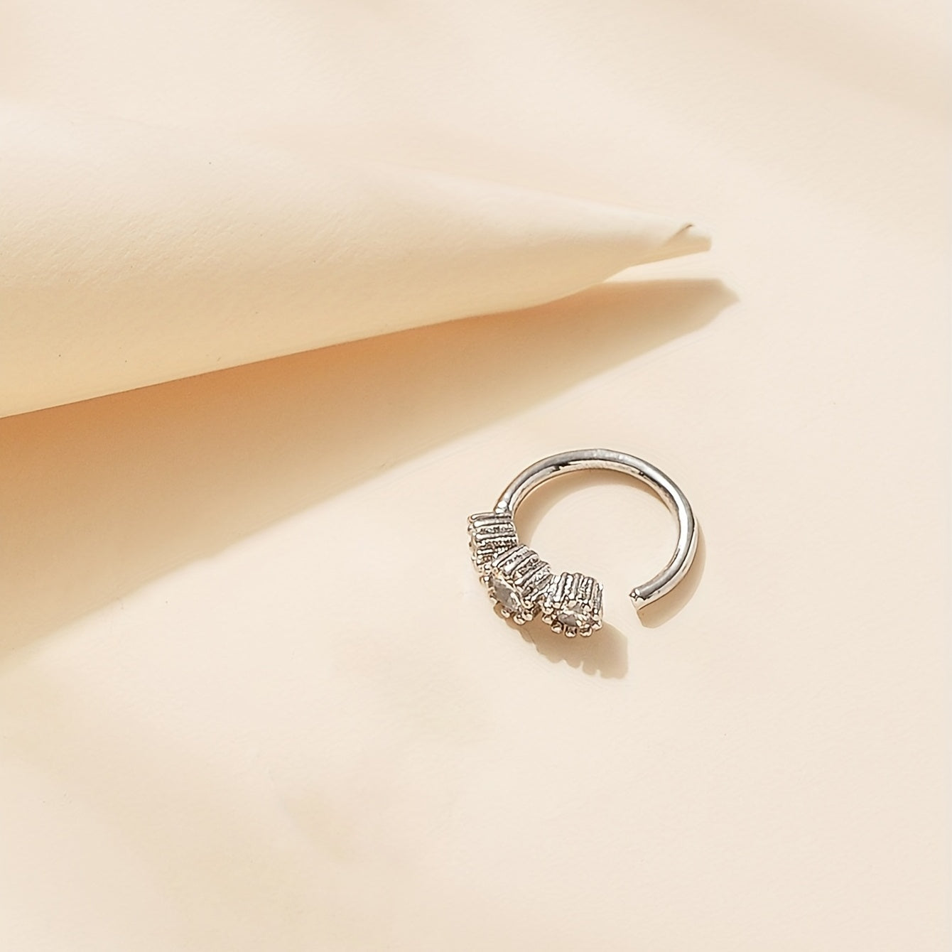 This nose ring features a genuine zirconium stone in a copper setting, creating a stylish and elegant look.