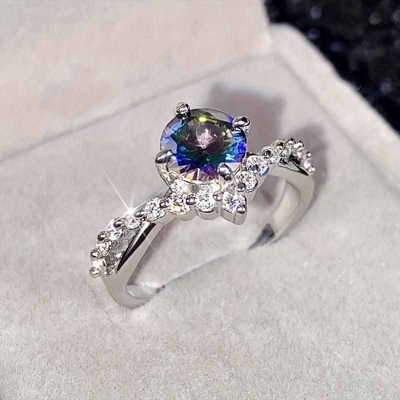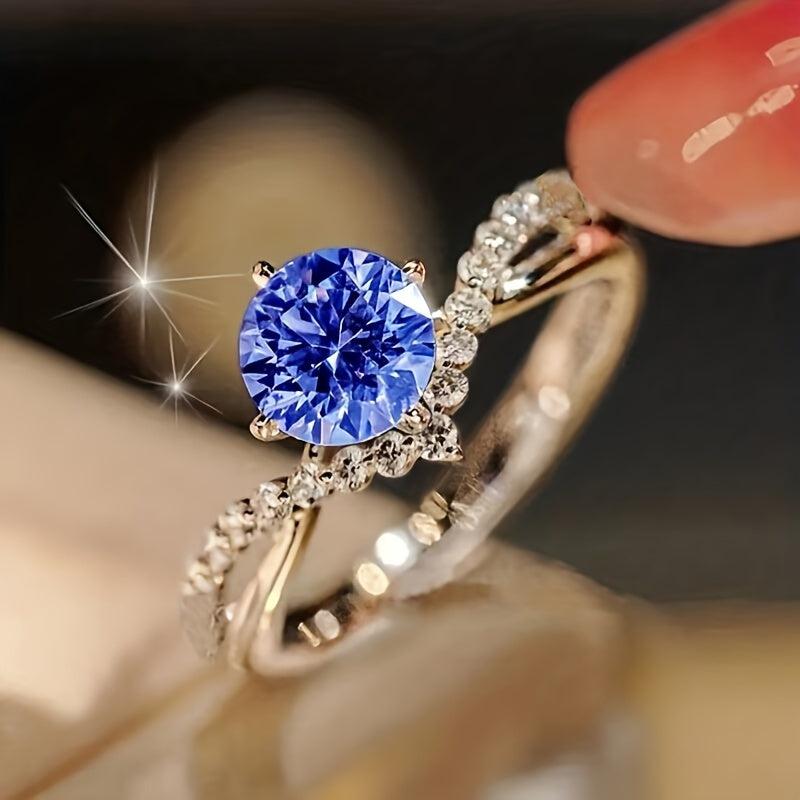 Elegant crown design promise ring with sparkling zirconia, ideal for engagement and wedding. Available in multiple colors. Box not included.